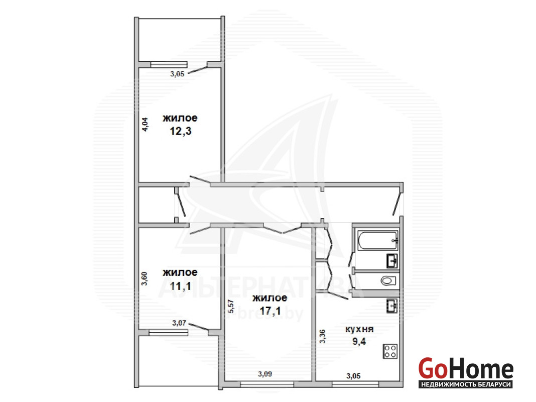 3-комнатная квартира, г. Брест, ул. Ленинградская, 1980 г.п., 8 / 9 панель, 73,6 / 69,2 / 40,6 / 9,4, санузел раздельный, две лоджии, стеклопакеты, деревянные межкомнатные двери, полы - доска (в комнате), ламинат (в гостиной) и линолеум (в кухне), потолки - оклеены обоями (2,5 м), стены оклеены обоями, ванна, телефон, домофон. Кухонный гарнитур, остальная мебель по договоренности. Квартира в жилом состоянии. Лот - 260096