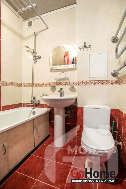 - Санузел совмещённый, облицован плиткой, аккуратный и функциональный: ванна, умывальник, сантехника без следов износа.