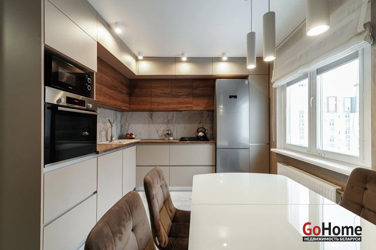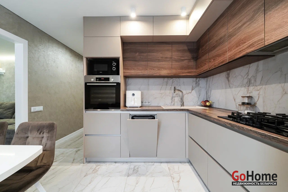 Качественный ремонт, отличная мебель и встроенная техника: посудомоечная машина, духовой шкаф, варочная панель и холодильник Bosch, стиральная машина LG, вытяжка Elka.