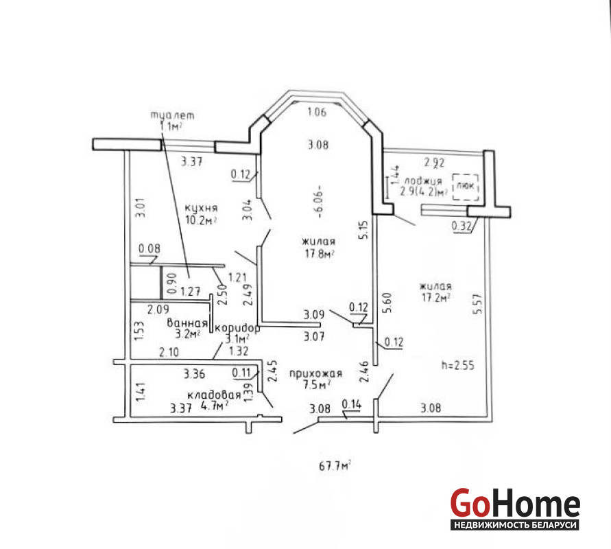 Метраж: 67.7 с учетом лоджии. Комнаты: 17.8/ 17.2/ кухня 10.2.