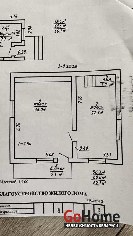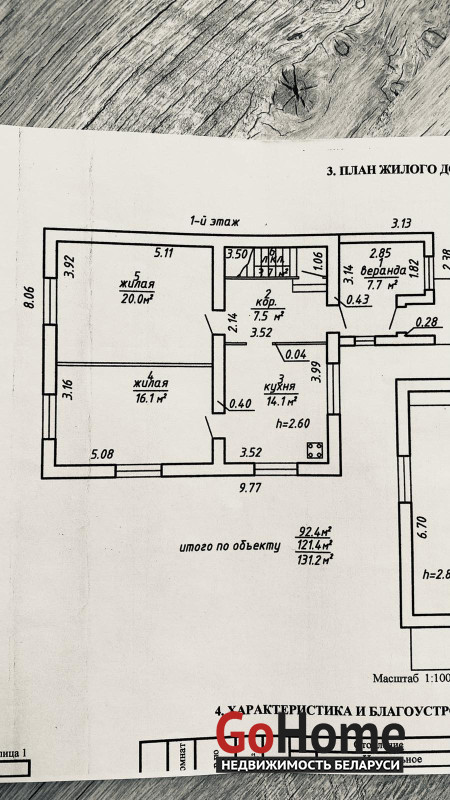 На первом этаже 2 жилые комнаты, кухня, прихожая, веранда