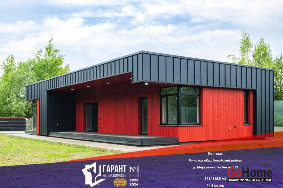 Данный дом расположен по адресу: Минская обл., Логойский р-н, Беларучский с/с, д. Мерковичи, уд. Лесная 21. Общая площадь 171 кв.м. 14,5 соток. Ровный, прямоугольный участок. Участок напротив леса.