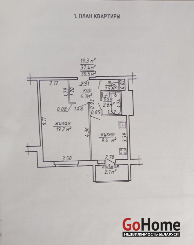 Квартира с ремонтом: установлены стеклопакеты, ламинат на полу, новая проводка и сантехника. Входные двери – металлические, лоджия застеклена. Высота потолков – 2,56 м. Общая площадь – 39,5 м², жилая – 19,3 м², кухня – 9,5 м². Санузел раздельный, в ванной остается гарнитур. Окна выходят на северо-запад, солнце во второй половине дня.