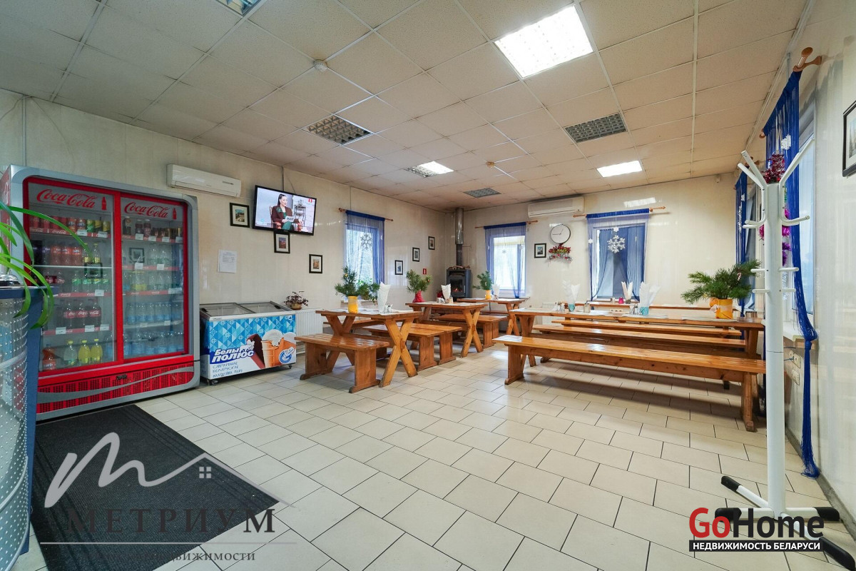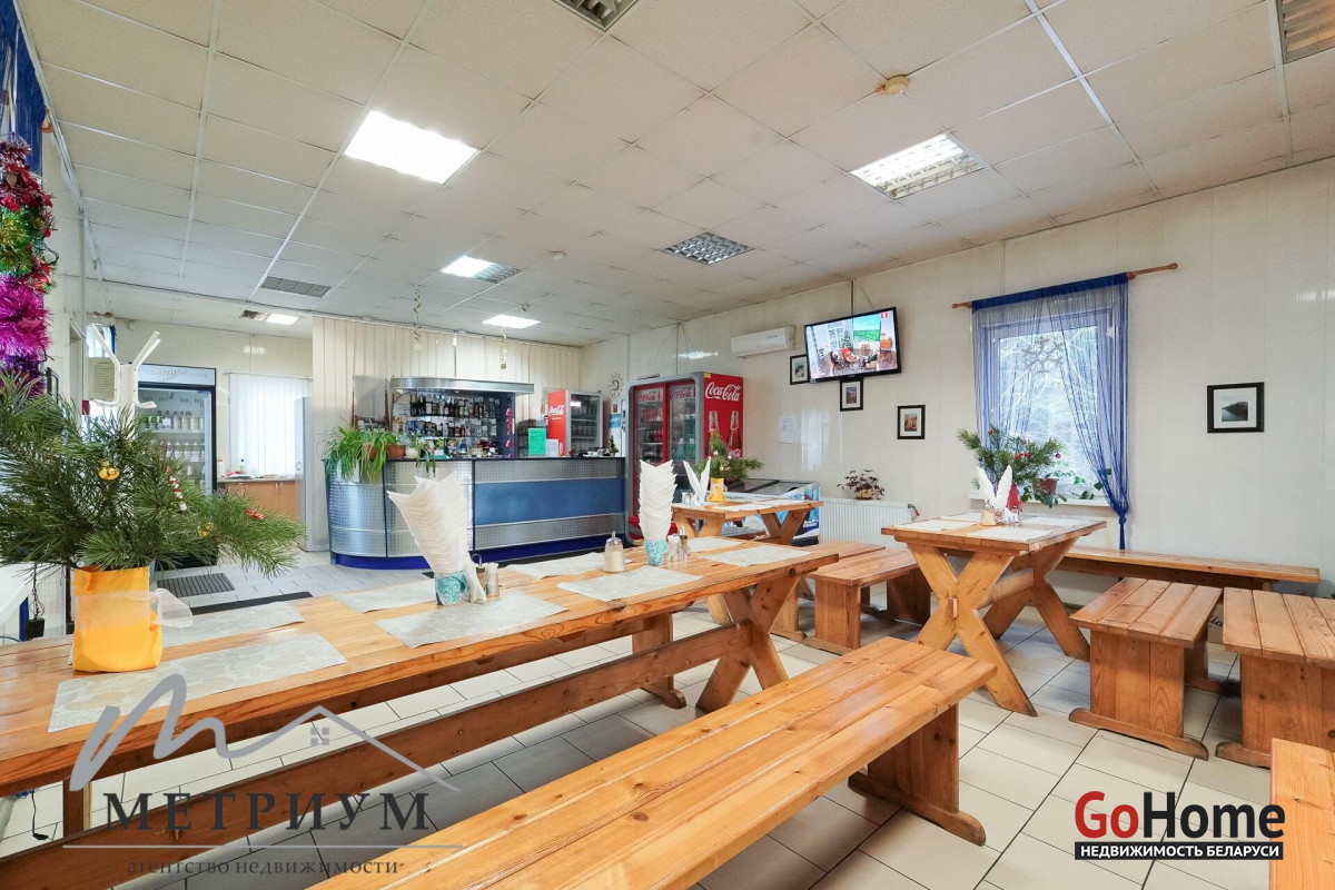Общая площадь здания — 131,7 м2 Зал для посетителей — ~70 м2, посадочных мест до 40 человек (длинные столы, уютная атмосфера, камин, кондиционер, ТВ, Wi-Fi) Кухня — ~30 м2, полностью оборудована и готова к работе Подсобные помещения, 2 санузла Собственная артезианская скважина Местная канализация Электричество 220/380 В Система видеонаблюдения + охранная сигнализация Участок земли — 0,10 га (10 соток) с асфальтированной стоянкой для легковых и грузовых автомобилей Кафе работает стабильно, домашняя белорусская кухня, шашлык, рыба, супы, напитки — всё пользуется спросом у путешественников.