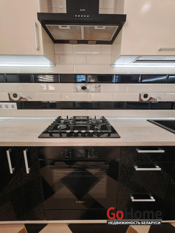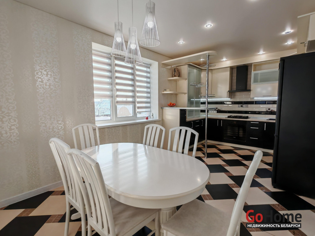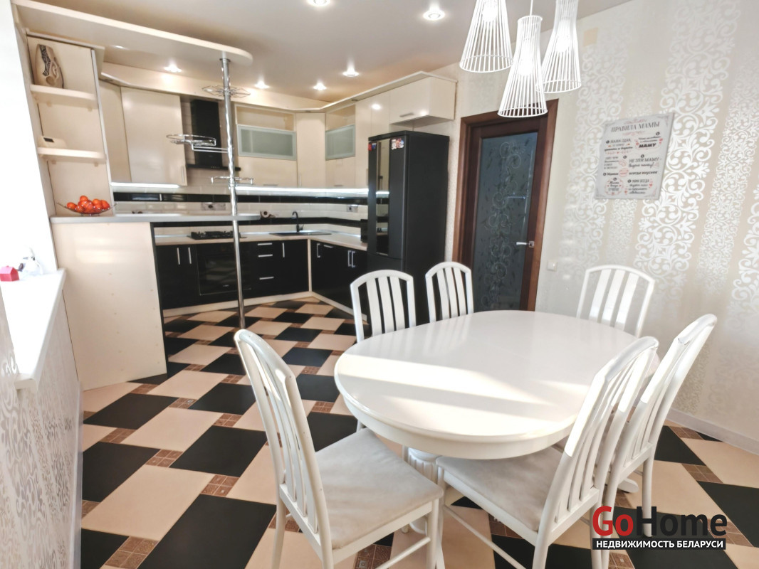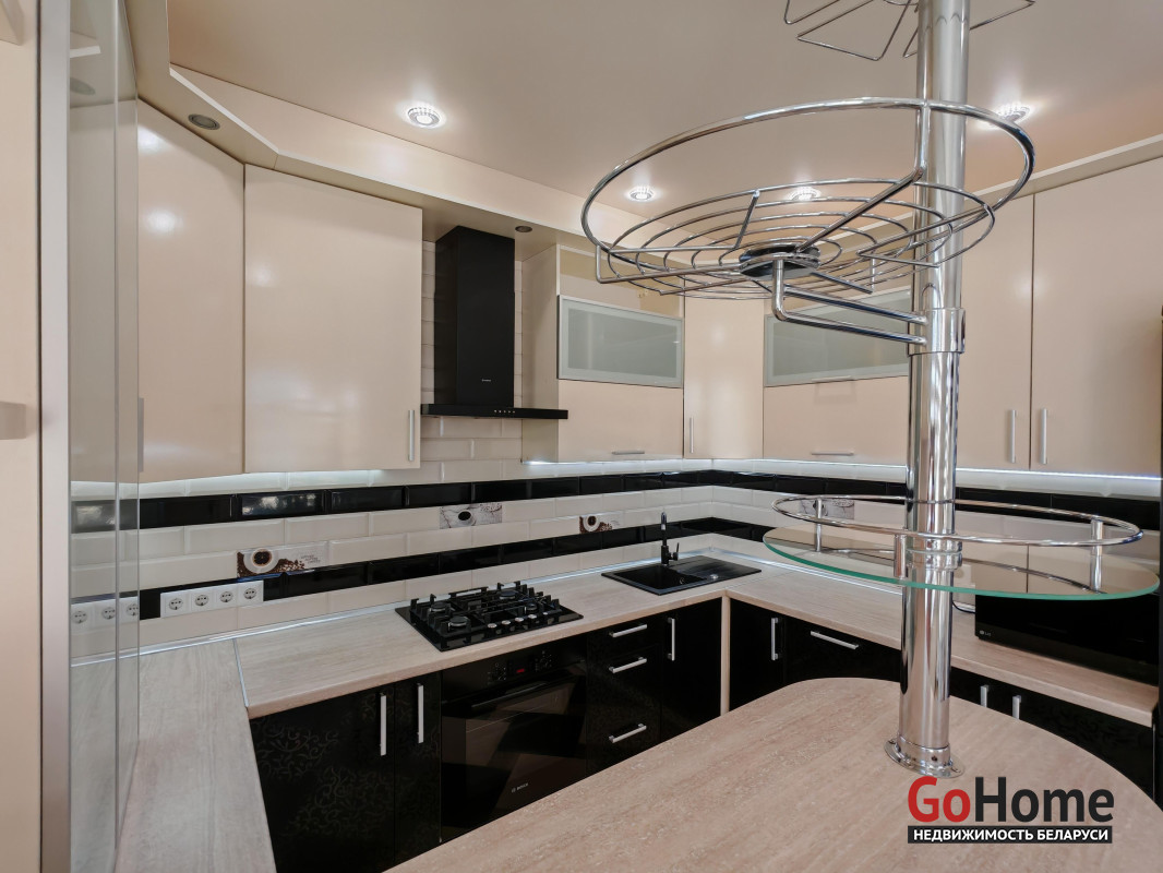 Кухня обустроена по периметру большой встроенной кухней со встроенной бытовой техникой, включая в себя: газовую, варочную панель, духовой шкаф, вытяжку, посудомоечную машину. Установлен высокотехнологичный газовый котел Viessmann ( Германия), обеспечивая надежность и энергоэффективность. Большой двухкамерный холодильник.