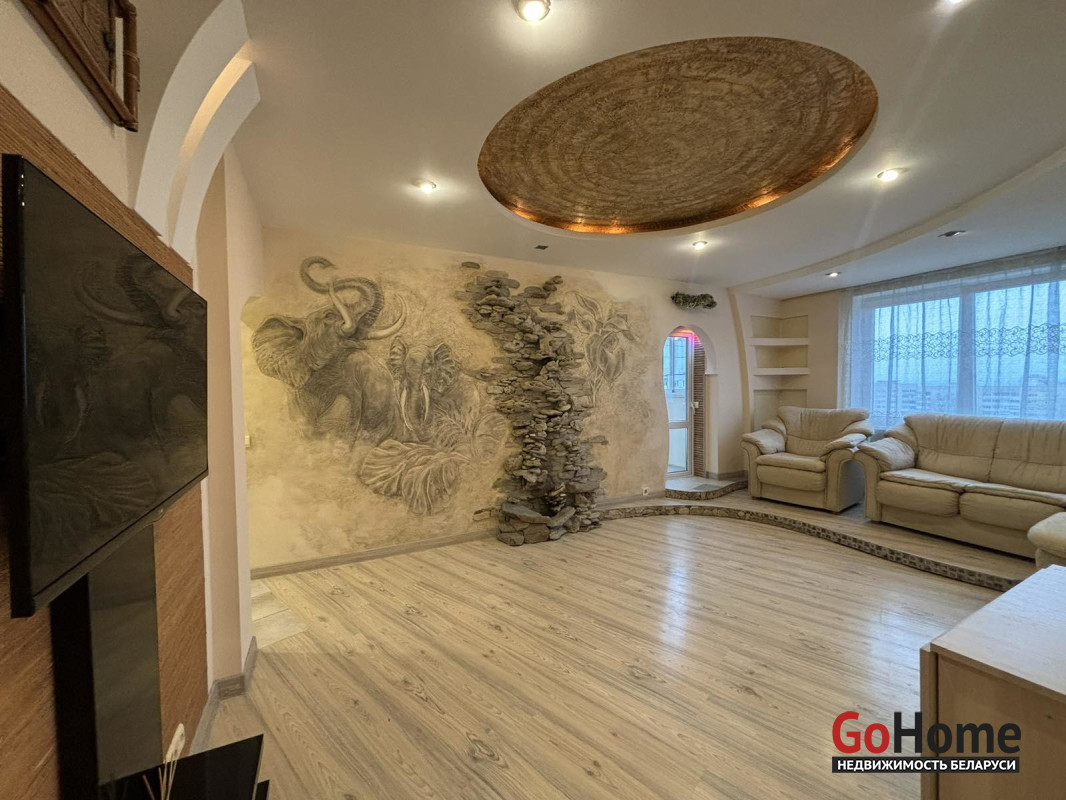 Квартира продается полностью с мебелью и с техникой. Много оригинальных дизайнерских решений (барельеф с действующим водопадом для ионизации воздуха, парящий кухонный стол, участки стеклянного пола, часы, барельефы в африканской тематике, светильник «солнце Майя» и др. ) делают квартиру комфортной и неповторимой. В квартире есть удобная просторная гардеробная. Есть техническая подготовка под 2 кондиционера ,проведено оптоволокно, разноуровневое освещение по всей квартире.