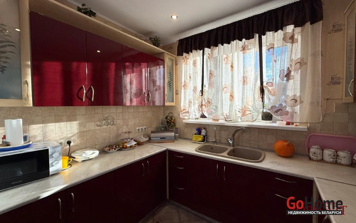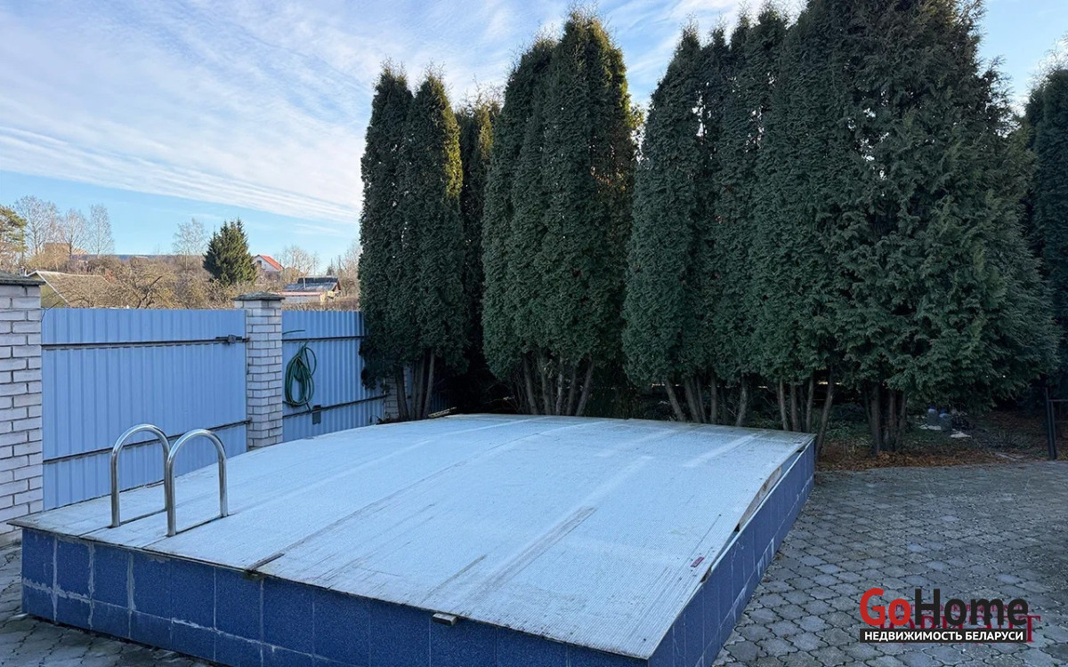 Ровный и высокий участок с декоративно- культурными насаждениями, во дворе свой бассейн, баня, летняя кухня, гараж.