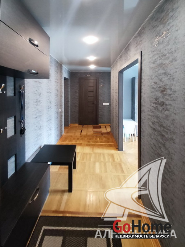 2-комнатная квартира, г. Брест, б-р Космонавтов, 1977 г.п., 3 / 5 кирпич, 52,9 / 50,9 / 31,9 / 6,9, санузел раздельный, подвал, лоджия застеклена, стеклопакеты, межкомнатные двери - массив, входная дверь металлическая, натяжные потолки - глянец (в коридоре) и матовые, полы (положены на стяжку) - паркет (в комнатах) и плитка (в кухне), стены оклеены обоями, в санузле современная плитка, акриловая ванна, телефон, домофон. Кухонный гарнитур, шкаф (в коридоре, на лоджии), остальная мебель по договоренности. Квартира с хорошим ремонтом. Квартира расположена на две стороны. Окна выходят на зеленую зону. Чистый подъезд. Во дворе игровая детская площадка, парковка для автомобилей. Лот - 260106