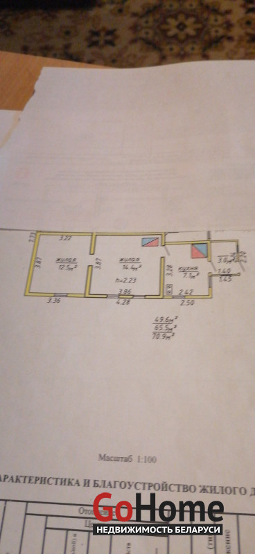 Жилая 2 комнаты : 14,4 +12,5м2.