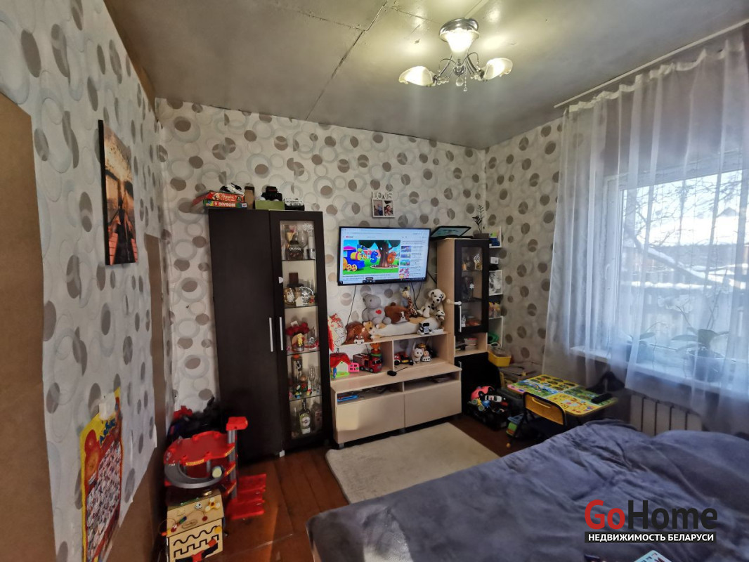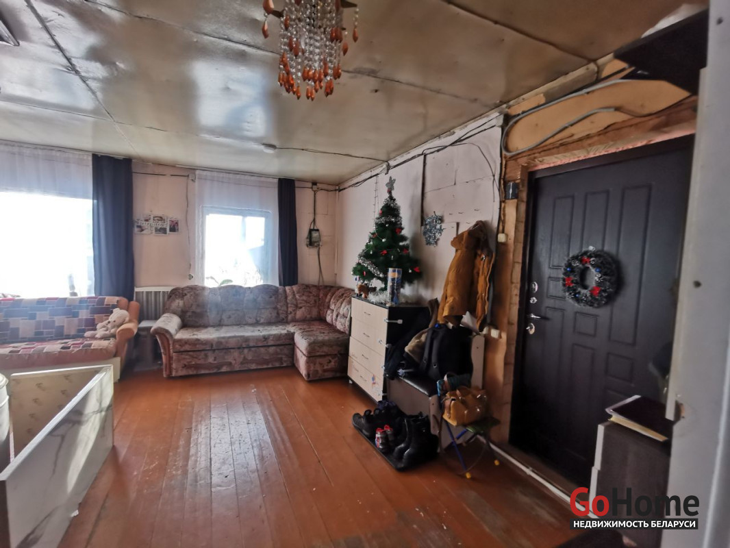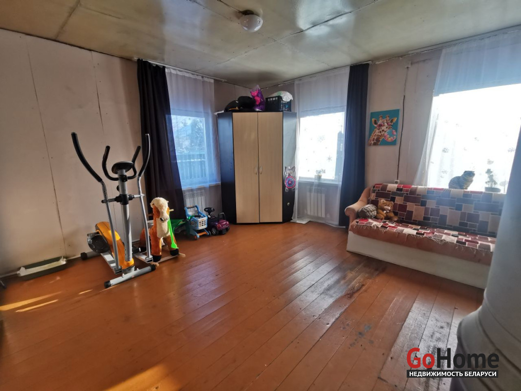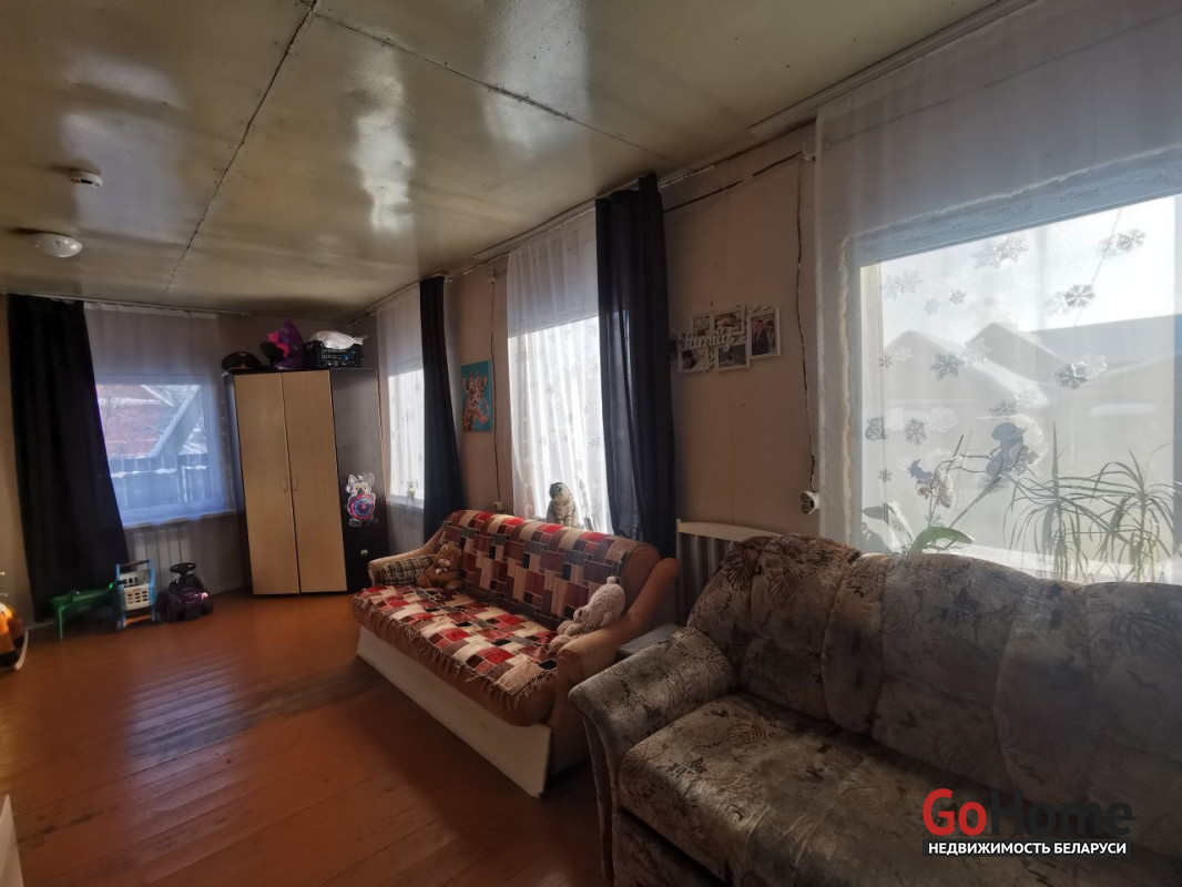 В доме две жилые комнаты, все окна ПВХ, есть действующий дымоход (планировалось обустройство камина). На участке есть сарай и уличный туалет (выгреб). Дом находится в Железнодорожном районе Витебска.
