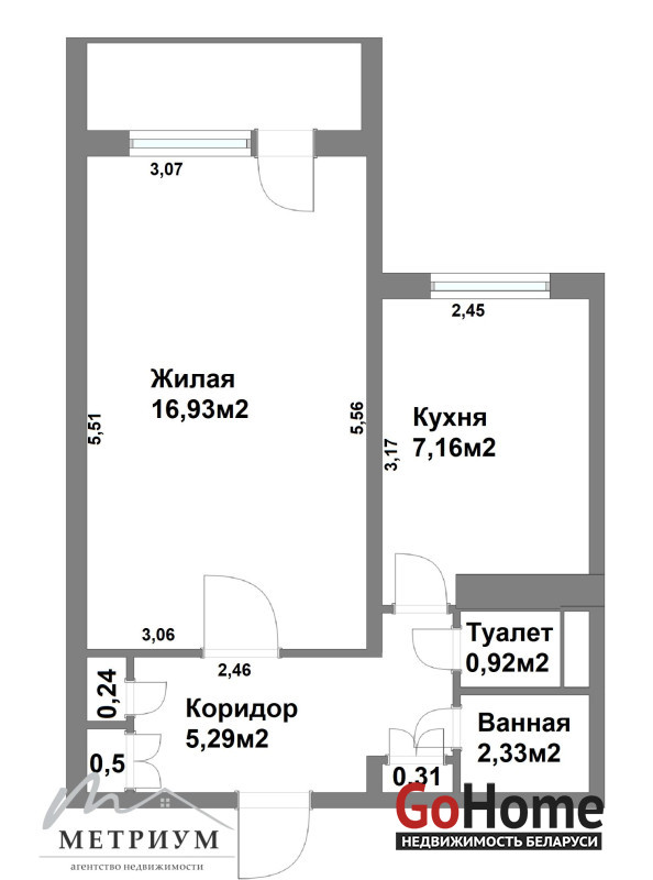 С выходом на застеклённую лоджию, есть оборудованное рабочее место и место для хранения