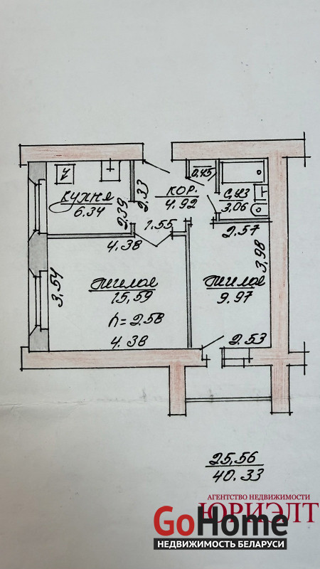Общая площадь 40.33 м