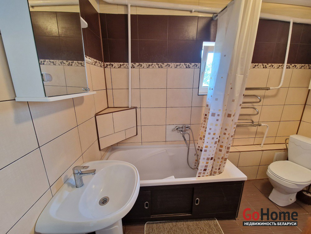 Все коммуникации заведены в дом. Канализация центральная, разведена под фундаментом. Отопление – двухконтурный газовый котёл. Материал полов –¬ ламинат, плитка. Санузел совмещен, облицован плиткой. Оконное остекление осуществлено энергосберегающими стеклопакетами. В квартире есть погреб.