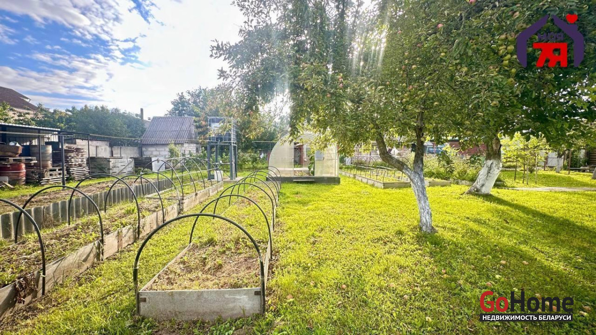 - На участке растут плодовые деревья: 3 грецких ореха, яблони, груши, черешня, сливы и персик. Посажен крыжовник и малина. Сделаны высокие грядки. Участок огорожен забором из металлического блок хауса.