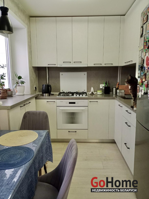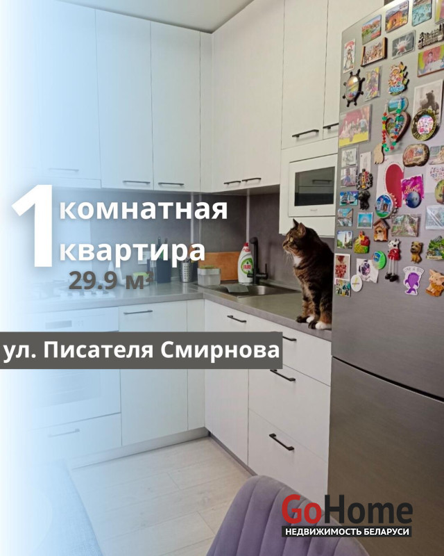 Подписывайтесь на наш instagram @ecrzby для удобного слежения за новыми актуальными объектами.Продаётся светлая и уютная 1-комнатная квартира по адресу ул. Писателя Смирнова, 23/3 (м-н Речица), расположенная на 4 этаже 5-этажного кирпичного дома, построенного в 1976 году. Общая площадь квартиры составляет 29,9 кв.м., из которых жилая площадь — 17,4 кв.м., а кухня — 5,6 кв.м. Санузел совмещённый, в подвале имеется кладовая. В квартире выполнен качественный современный ремонт: стены оклеены обоями, полы покрыты ламинатом и плиткой, потолки натяжные, установлены стеклопакеты, а входная дверь — металлическая. В ванной комнате отделка выполнена современной плиткой, заменена сантехника, проведена новая электрика и установлен новый кондиционер. Новым владельцам остаются два встроенных шкафа, комод, прикроватная тумба, кондиционер, все светильники, мебель в ванной, а также кухня со встроенной техникой, включая вытяжку, микроволновую печь и электрическую духовку. В кухне установлен трехступенчатый фильтр для воды. Инфраструктура района развита: рядом находятся два детских сада, две общеобразовательные школы и гимназия с музыкально-хореографическим направлением, магазины, белпочта, пункты выдачи WB, Ozon, Европочта, аптеки и остановка с хорошим транспортным сообщением.