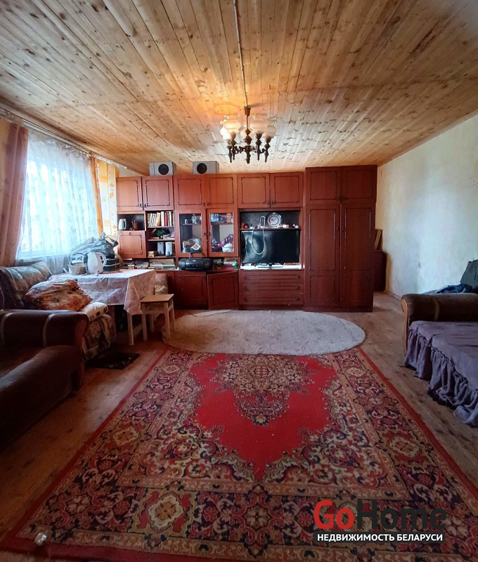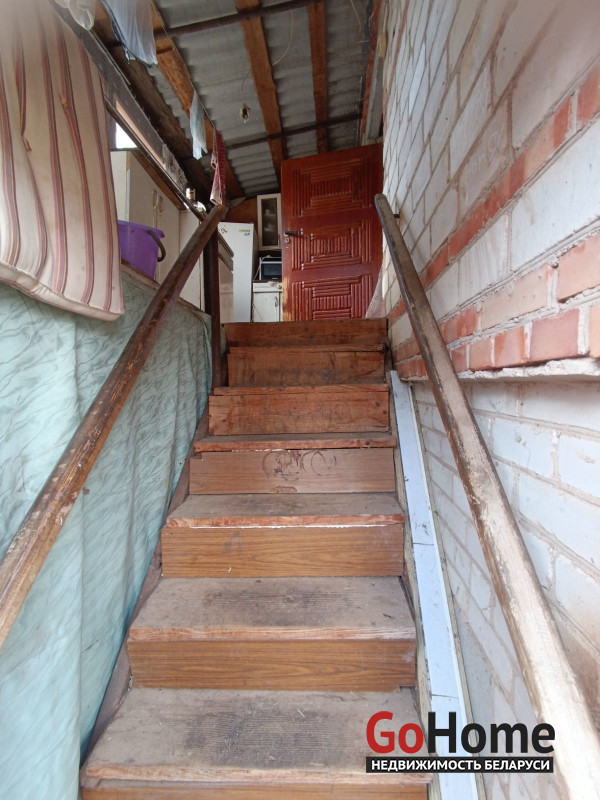 Дом бревенчатый, обложен кирпичем. Крепкий фундамент. Крыша шифер. На первом этаже большой вместительный гараж. На втором этаже большая уютная комната и обустроенная кухня. Есть возможность провести печное отопление.