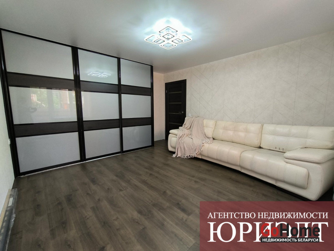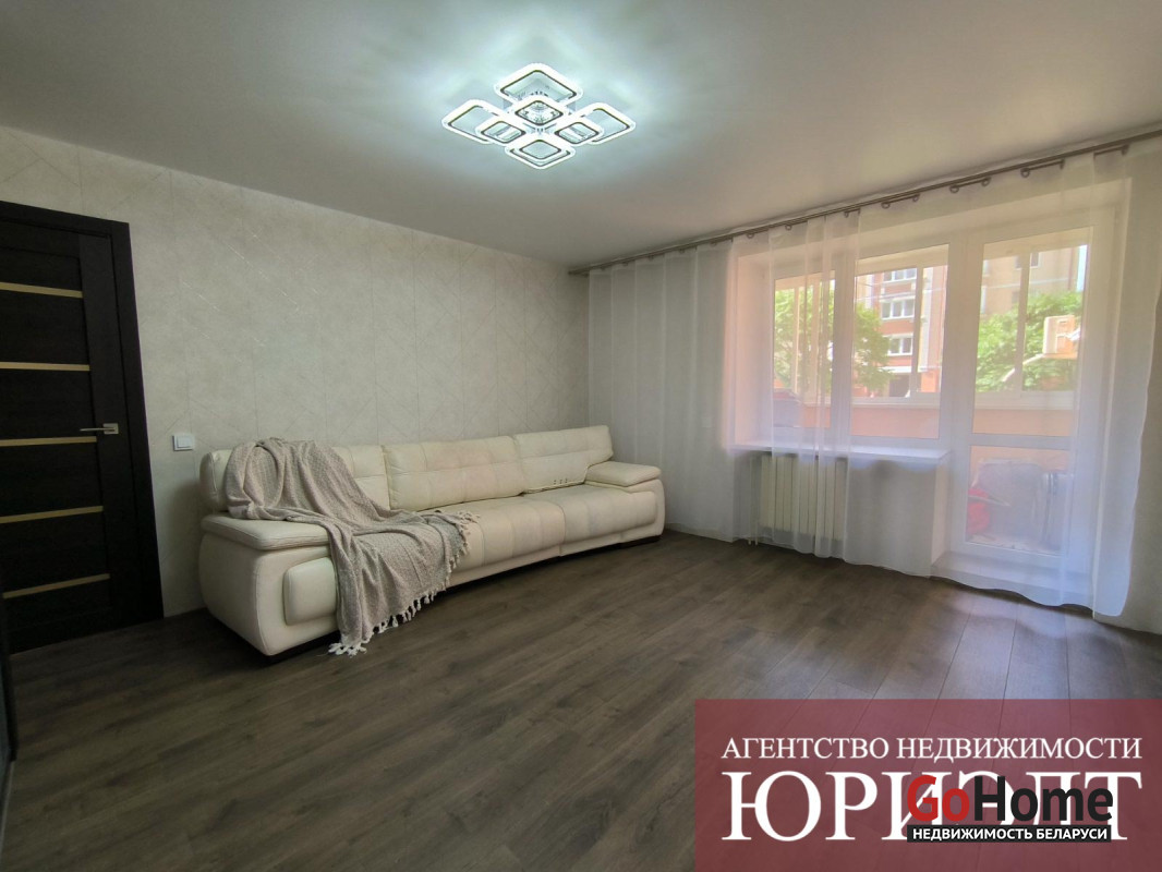 Квартира очень уютная и уже готова к проживанию: полы - ламинат / плитка на стяжке (коридор и кухня с подогревом), потолки натяжные, за исключением кухни, на стенах обои нейтральных тонов. Ванная комната и туалет облицованы плиткой.