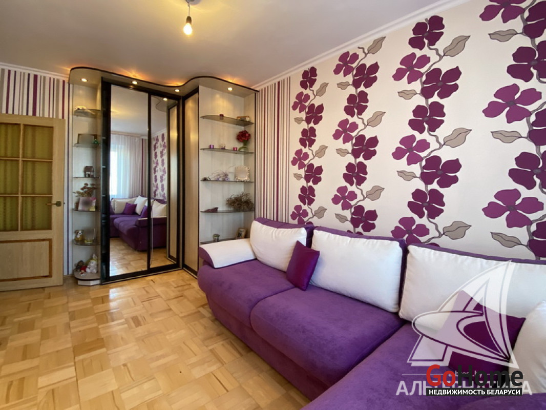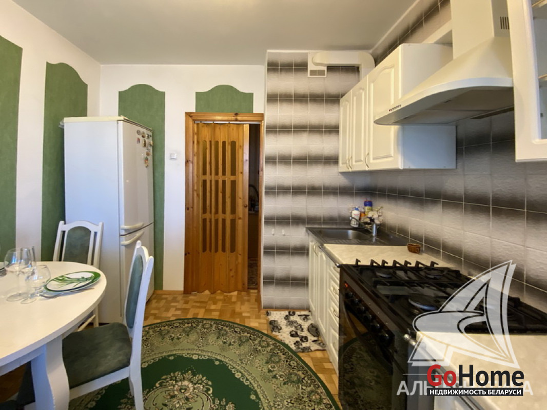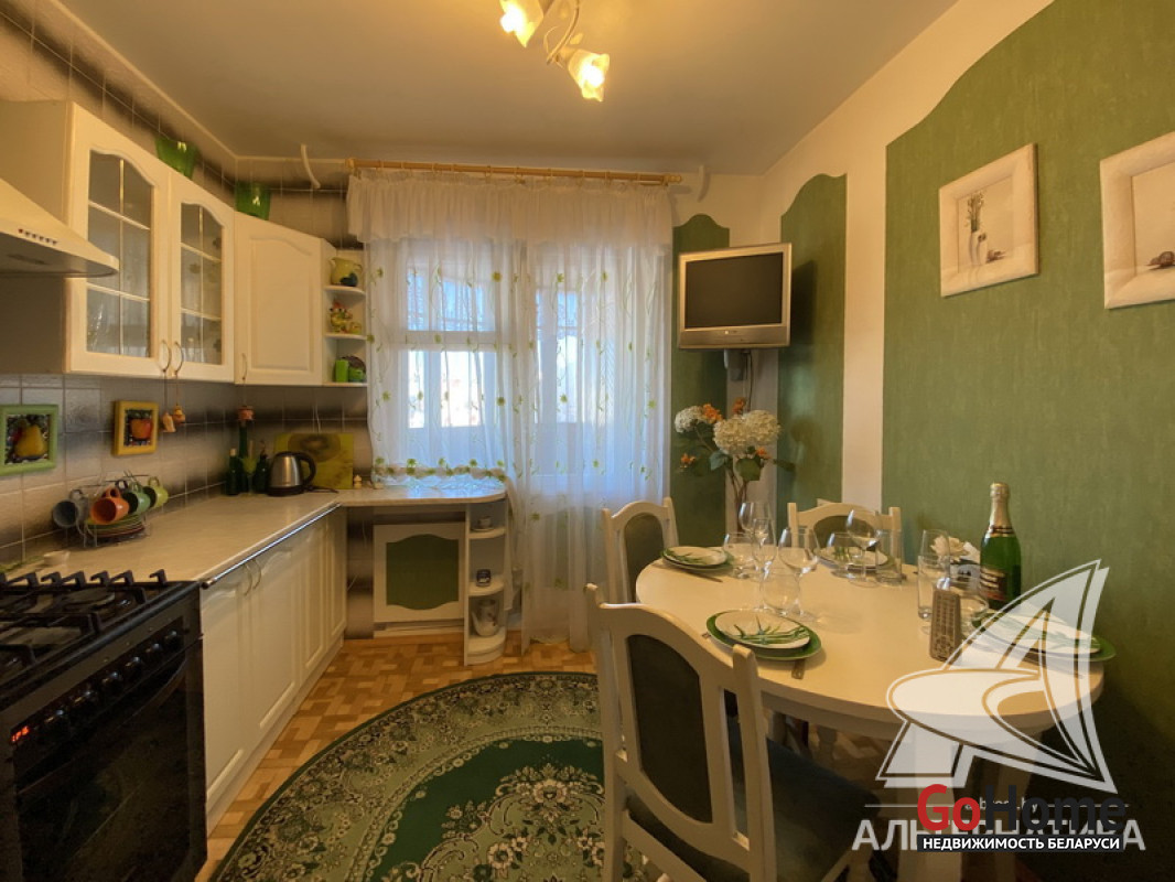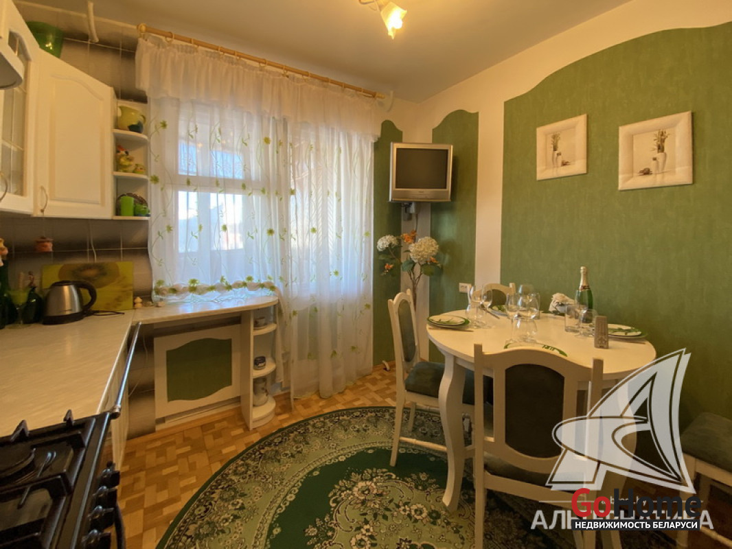 3-комнатная квартира, г. Брест, ул. Сябровская, 1994 г.п., 10 / 10 панель, 71,2 / 66,8 / 41,5 / 9,4, санузел раздельный, две лоджии, стеклопакеты (частично) и деревянные стеклопакеты (на лоджии в кухне), межкомнатные двери - массив (сосна), входная дверь двойная деревянная (лак), потолки - снежка (2,62 м), полы - паркет, в санузле современная плитка, заменена сантехника, заменен полотенцесушитель, чугунная ванна, новый электросчетчик, система видеонаблюдения, домофон. Кухонный гарнитур, газовая плита, вытяжка, светильники, стулья, холодильник, телевизор; зеркало, шкаф, комод и тумба (в коридоре); диван, встроенный шкаф, кресло, кровать и стенка (в комнатах); стиральная машина, тумба под раковину, шкаф-пенал и зеркало (в ванной), шкаф (на лоджии). Квартира находится под охраной. В квартире частично произведен ремонт. Квартира расположена на две стороны. Чистый подъезд. Есть технический этаж. Дом расположен в глубине двора. Во дворе парковка для автомобилей. Лот - 260133