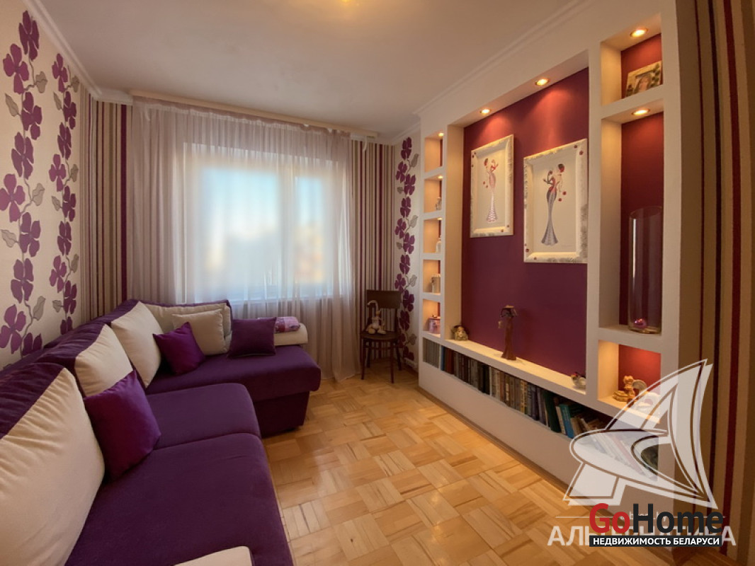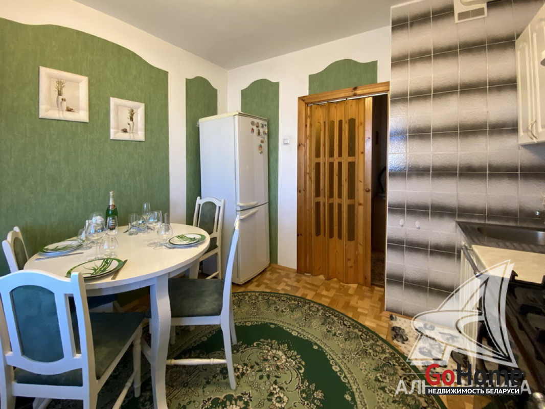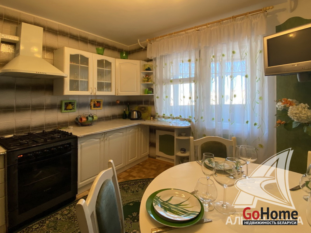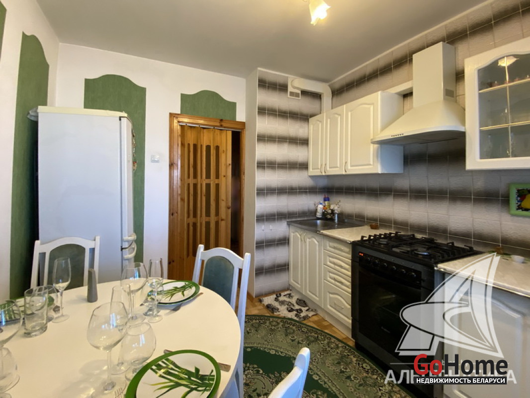 3-комнатная квартира, г. Брест, ул. Сябровская, 1994 г.п., 10 / 10 панель, 71,2 / 66,8 / 41,5 / 9,4, санузел раздельный, две лоджии, стеклопакеты (частично) и деревянные стеклопакеты (на лоджии в кухне), межкомнатные двери - массив (сосна), входная дверь двойная деревянная (лак), потолки - снежка (2,62 м), полы - паркет, в санузле современная плитка, заменена сантехника, заменен полотенцесушитель, чугунная ванна, новый электросчетчик, система видеонаблюдения, домофон. Кухонный гарнитур, газовая плита, вытяжка, светильники, стулья, холодильник, телевизор; зеркало, шкаф, комод и тумба (в коридоре); диван, встроенный шкаф, кресло, кровать и стенка (в комнатах); стиральная машина, тумба под раковину, шкаф-пенал и зеркало (в ванной), шкаф (на лоджии). Квартира находится под охраной. В квартире частично произведен ремонт. Квартира расположена на две стороны. Чистый подъезд. Есть технический этаж. Дом расположен в глубине двора. Во дворе парковка для автомобилей. Лот - 260133