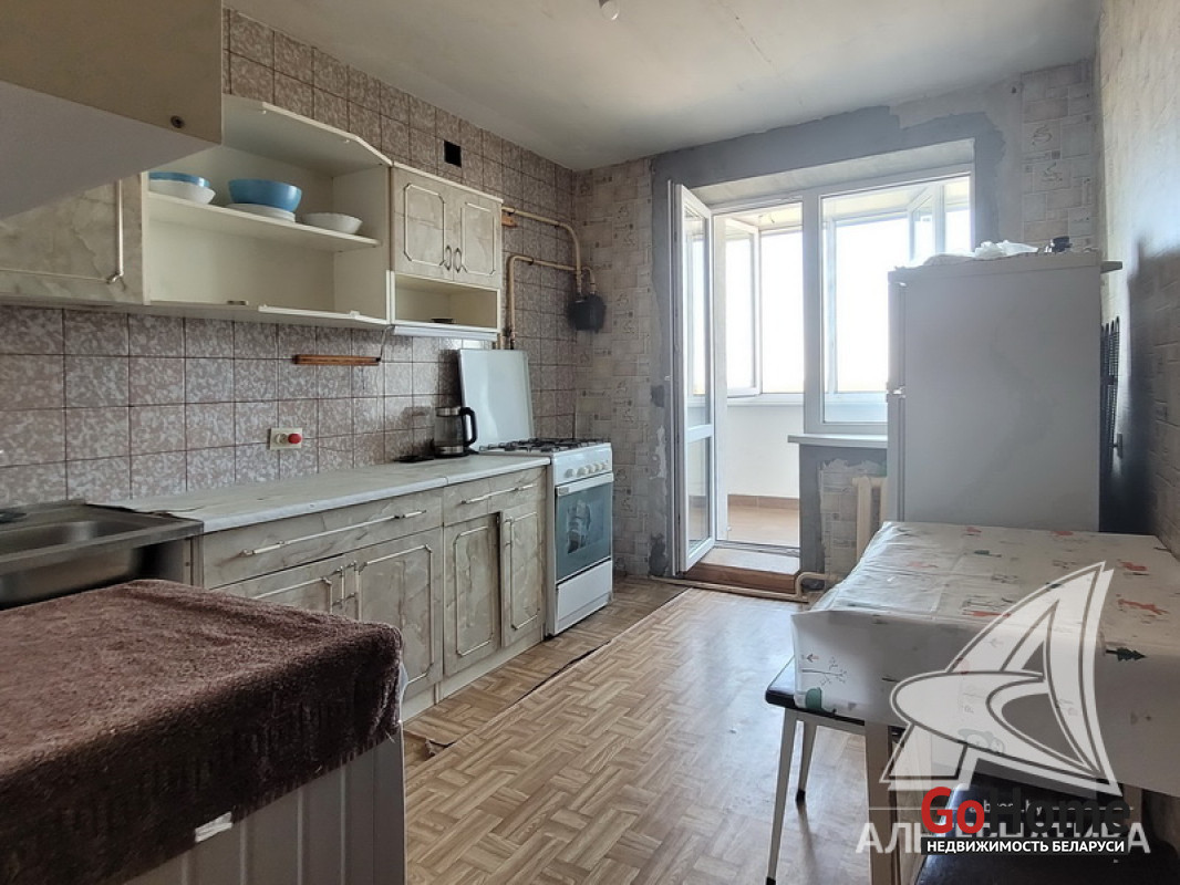 3-комнатная квартира, г. Брест, ул. Дубровская, 1995 г.п., 9 / 9 кирпич, 67,1 / 65,1 / 39,8 / 9,4, санузел раздельный, лоджия застеклена, подвал, стеклопакеты, межкомнатные двери - массив (сосна), входная дверь деревянная, комбинированные потолки (в комнате) и снежка, полы - доска под лак и линолеум (в кухне, в коридоре), стены оклеены обоями, чугунная ванна, телефон, домофон. Встроенный кухонный гарнитур, варочная панель. Квартира в жилом состоянии. Квартира расположена на две стороны. Все окна выходят во двор. Чистый подъезд. Есть технический этаж. Во дворе парковка для автомобилей. Дом расположен в глубине двора. Лот - 231145