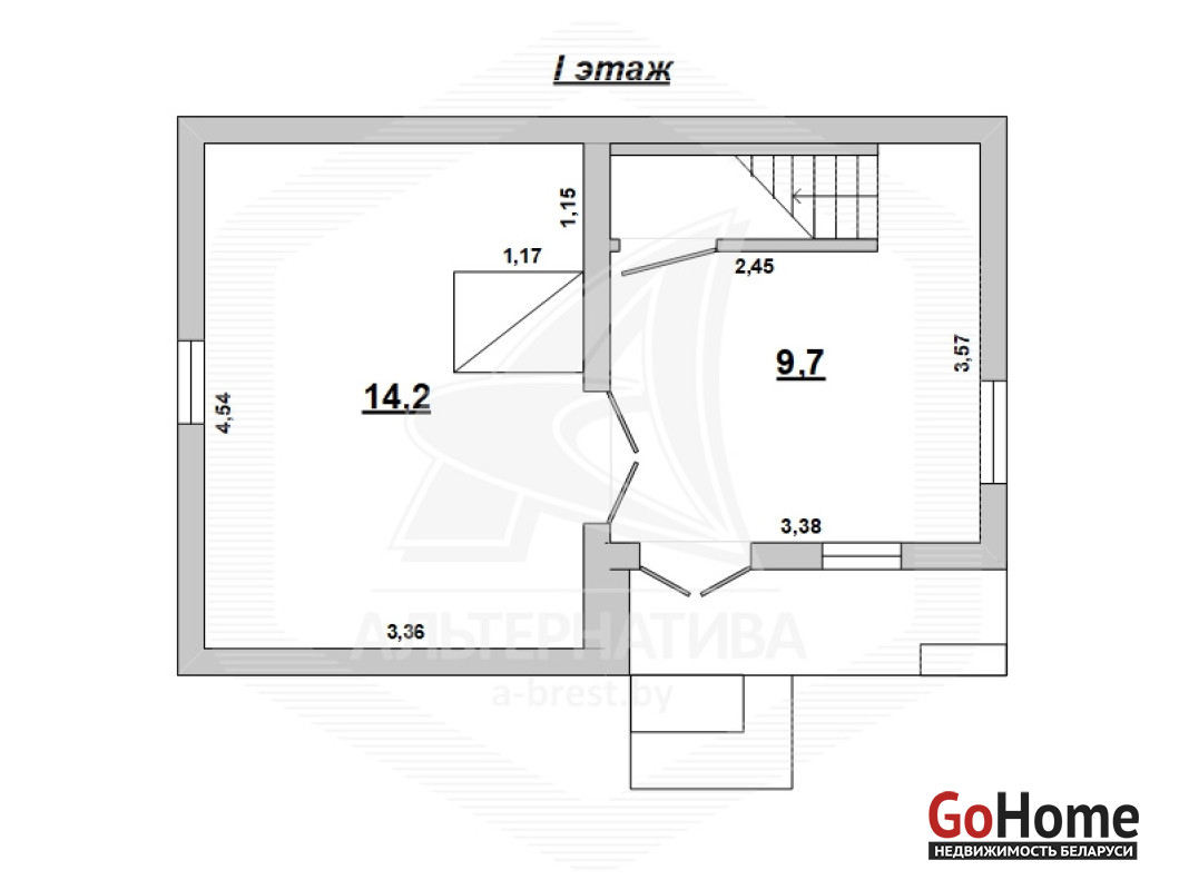 Садовый домик в Брестском р-не. 1 этаж, мансарда. Общ.- 43,5 кв.м. 2 комнаты.