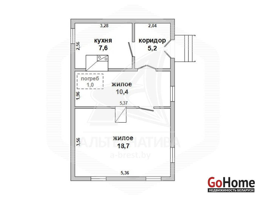 Дом под снос в Жабинковском р-не. 1940 г.п. 1 этаж. Общ.СНБ - 41,9 кв.м, общ.- 41,9 кв.м, жил.- 29,1, 2 комнаты, высота потолка - 2,50 м.