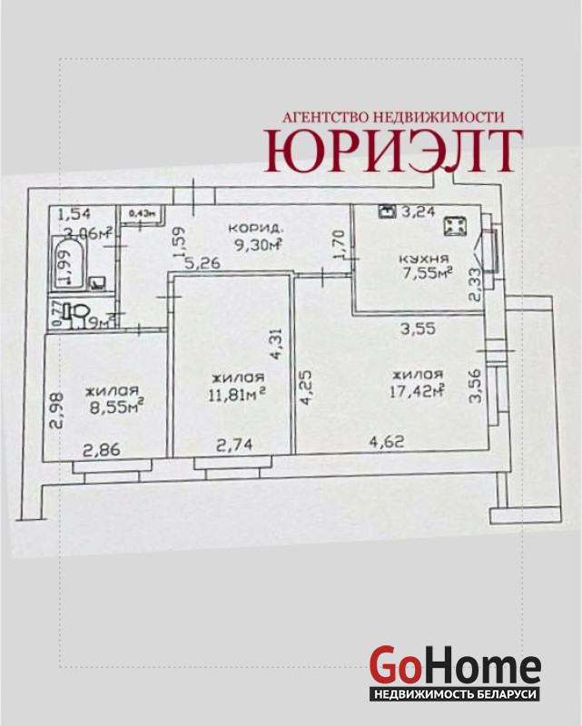 Выставлена на продажу трехкомнатная квартира по улице Петруся Бровки (Микрорайон «Кленковский») в городе Гомеле. Девятиэтажный одноподъездный кирпичный дом 1982 года постройки. Седьмой этаж. Общая площадь- 59,3 кв. метра, площадь по СНБ (включая лоджию)-63,3 кв.м, жилая- 37,8. Кухня-8,52 кв.м. Санузел раздельный. Все комнаты изолированные. Высота потолков-2,5 метра. Несомненными достоинствами квартиры является: