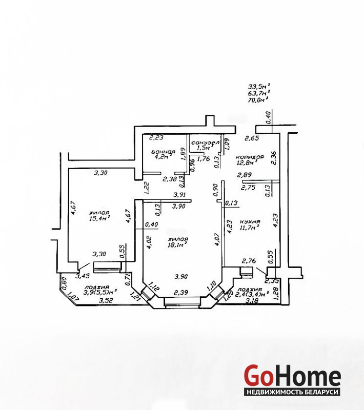 Общей площадью 63,7 м2., жилая 33.5 кв.м., кухня 11.7 кв.м. Квартира расположена на 4 этаже 5-ти этажного кирпичного дома.