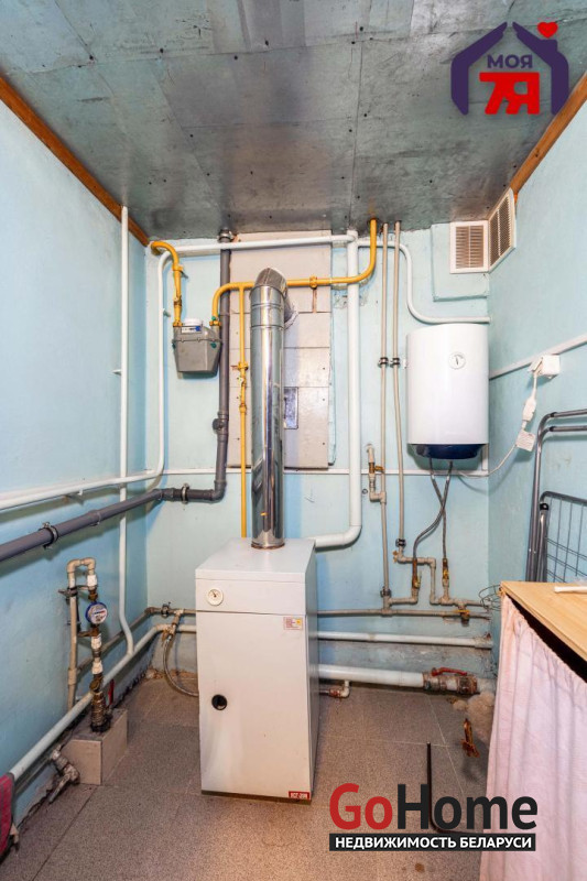 - Отопление дома осуществляется газовым котлом. Подключено центральное водоснабжение, канализация местная. Кровля выполнена из шифера.
