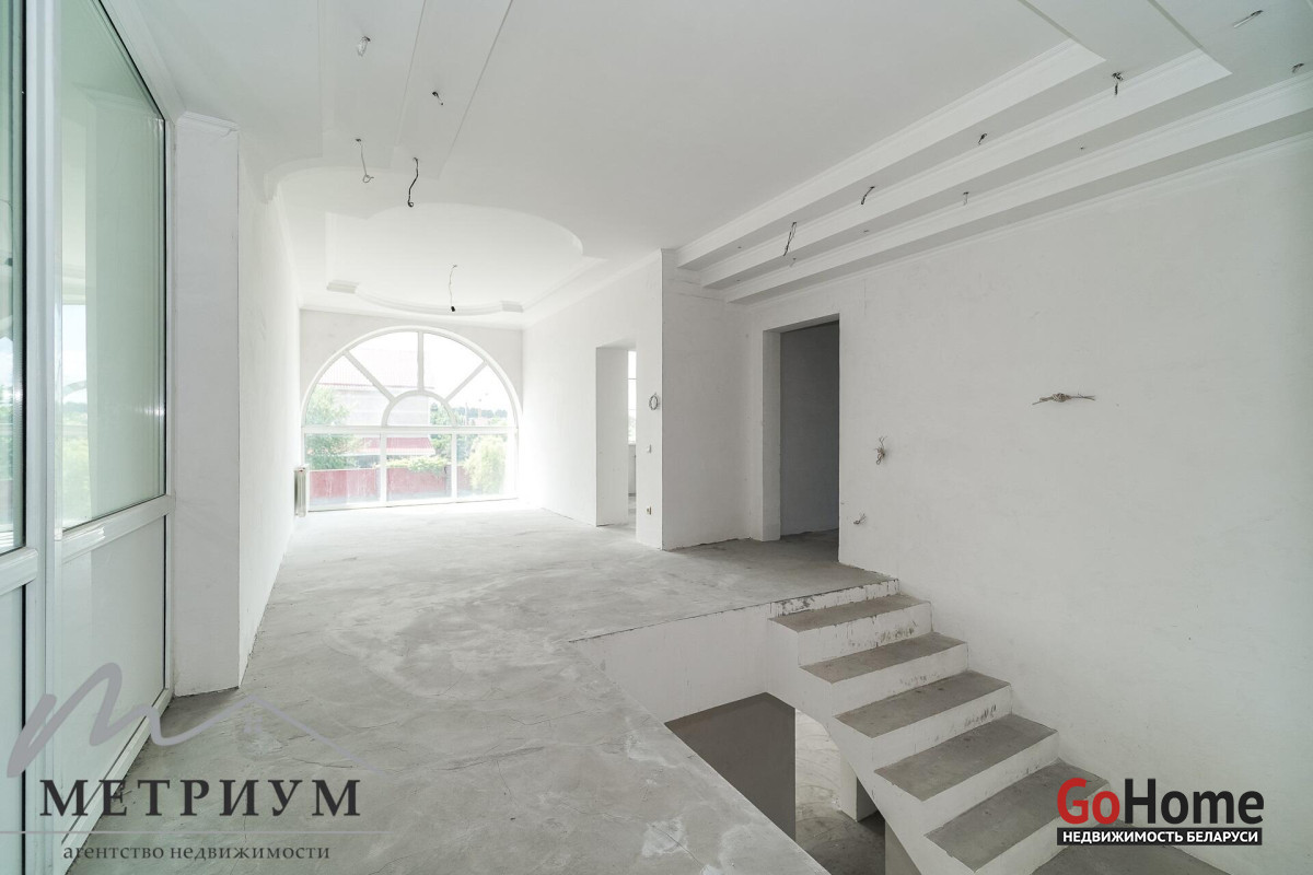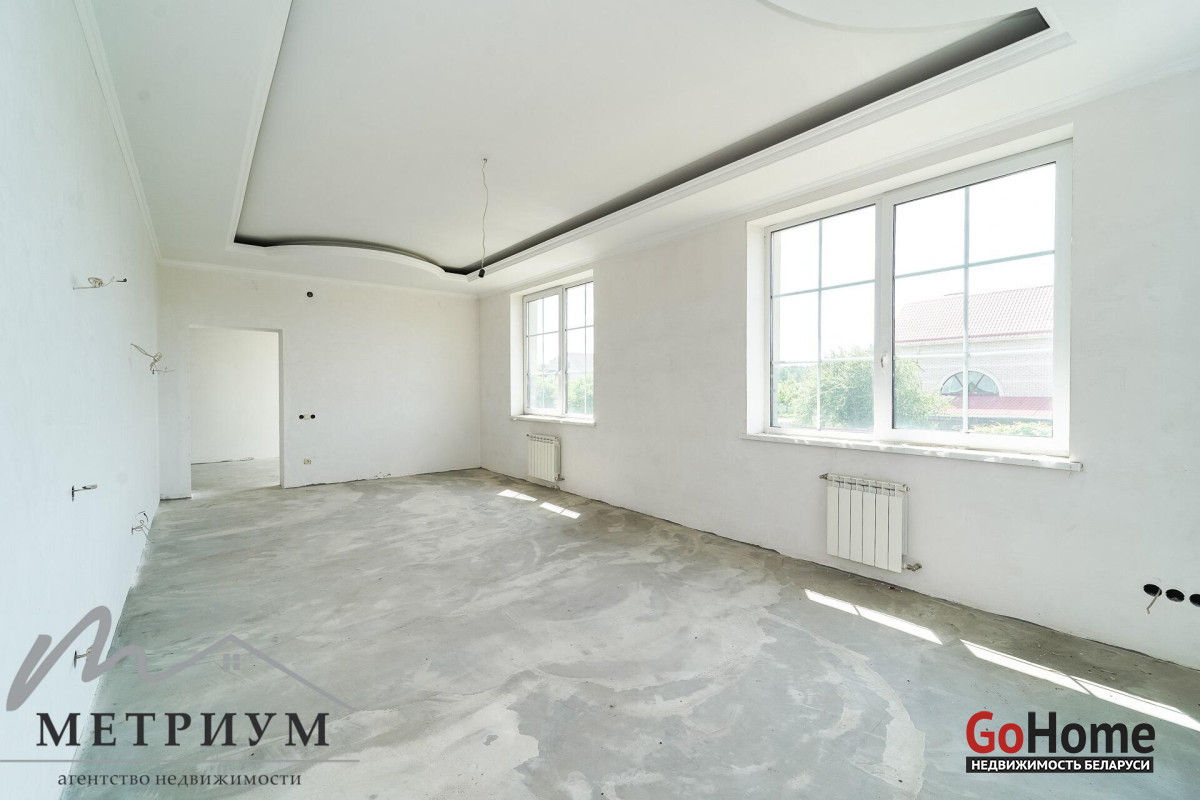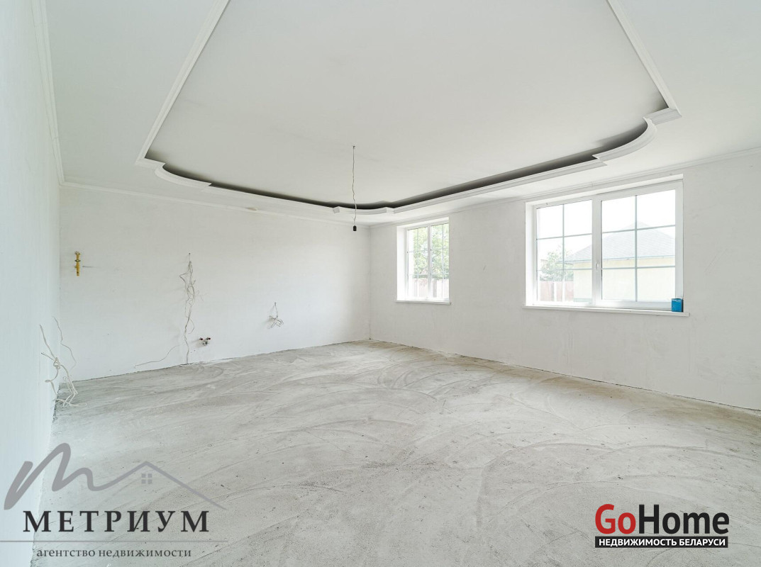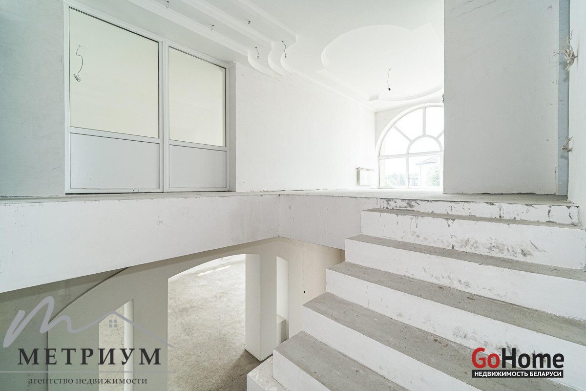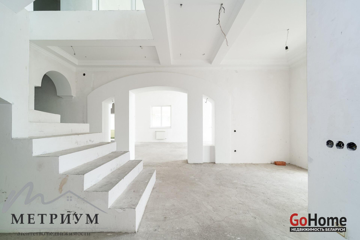 Готовность коттеджа 100% для Ваших дизайнерских решений! Здесь Вы можете воплотить все свои интерьерные мечты в полной мере! Фундамент бетонный литой, высотой 1.8 м, с утеплением (по оценкам специалистов – гарантия 150 лет). Наружные стены из г/c блока (400 мм). Крыша модульная, финский катепал. Стеклопакеты ПВХ высокого качества. Теплые полы. Разноуровневые потолки – 3.2-5.5 м.