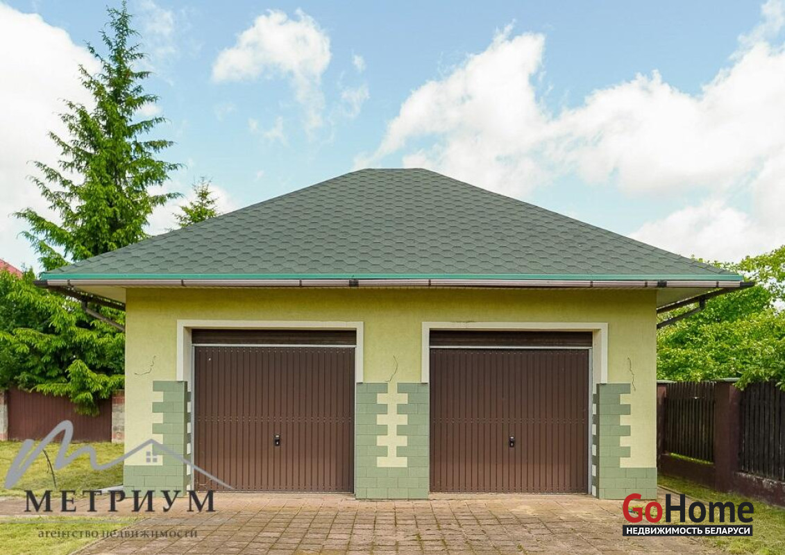 Во дворе отдельный гараж 49 кв.м. с подъемными воротами, на два автомобиля.