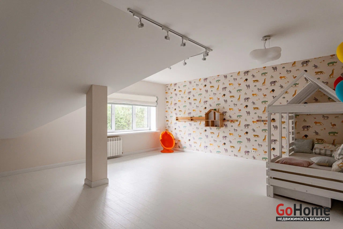 - Мансардный этаж: настоящий рай для детей! Огромная детская комната с собственным санузлом – идеальное место для игр, учёбы и отдыха младших членов семьи.