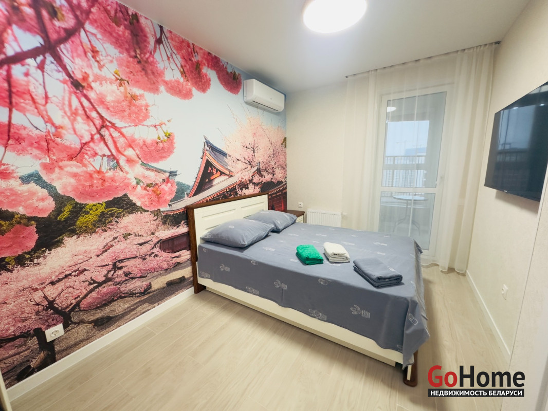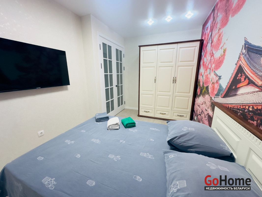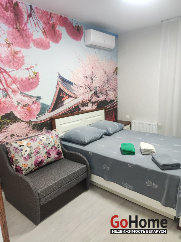 Квартира расположена по адресу Жореса Алферова, 5 в районе Минск мир, и вы можете арендовать на минуты. часы или сутки.