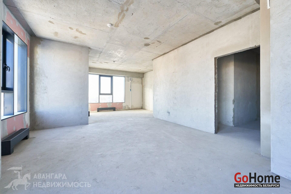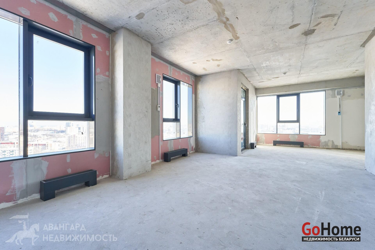 Квартира общей площадью 119.7 м2 по СНБ со свободной планировкой, благодаря чему вы можете спланировать самый смелый дизайн на свой вкус! Высота потолков – 2.88 м. Благодаря высокому этажу, а также такому удачному расположению квартиры именно в этой части дома, перед Вами открывается шикарный вид на дневной и вечерний Минск с его огнями и красками!