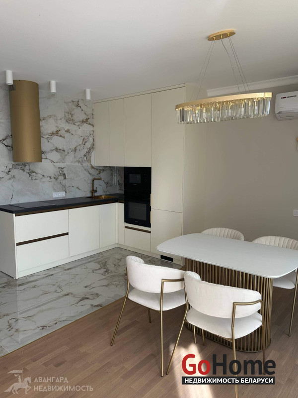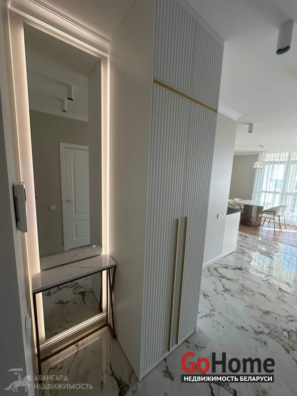 Площадь квартиры по СНБ - 74,7 м2. Панорамные окна во всей квартире. Кухня-гостинная, спальня, комната под рабочий кабинет или детскую комнату, гардеробная для хранения вещей с установленной стиральной машиной, совмещенный санузел, просторная лоджия для Ваших идей. Качественная встроенная техника, в т.ч. индукционная варочная панель, посудомоечная машина, стиральная машина, холодильник, духовой шкаф. Мебель выполнена по индивидуальному заказу. Разведены проходные выключатели и установлен кондиционер.