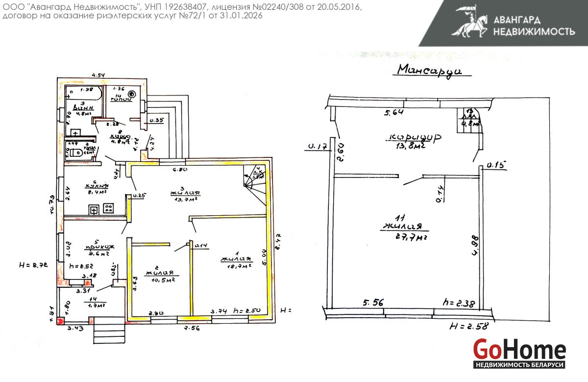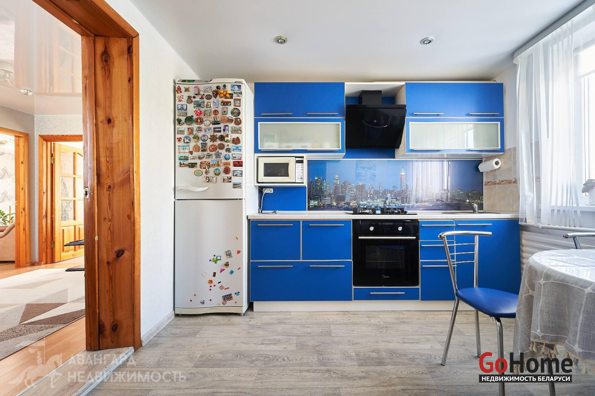 Дом 2005 г.п. Площадь общая 126.8 м2. Жилая площадь составляет 76.6 м2. Четыре жилые комнаты: 18.7 м2, 10.5 м2, 19.7 м2 и 27.7 м2, просторная кухня 8.4 м2. Все комнаты меблированы и готовы к проживанию. В доме организованы разнообразные системы хранения, раздельный санузел с подключенной стиральной машиной. Бонусом остается практически вся мебель.