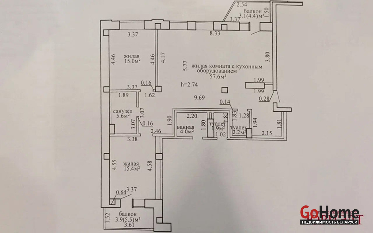 - высота потолков — 2,74 м (ощущение простора и свободы).