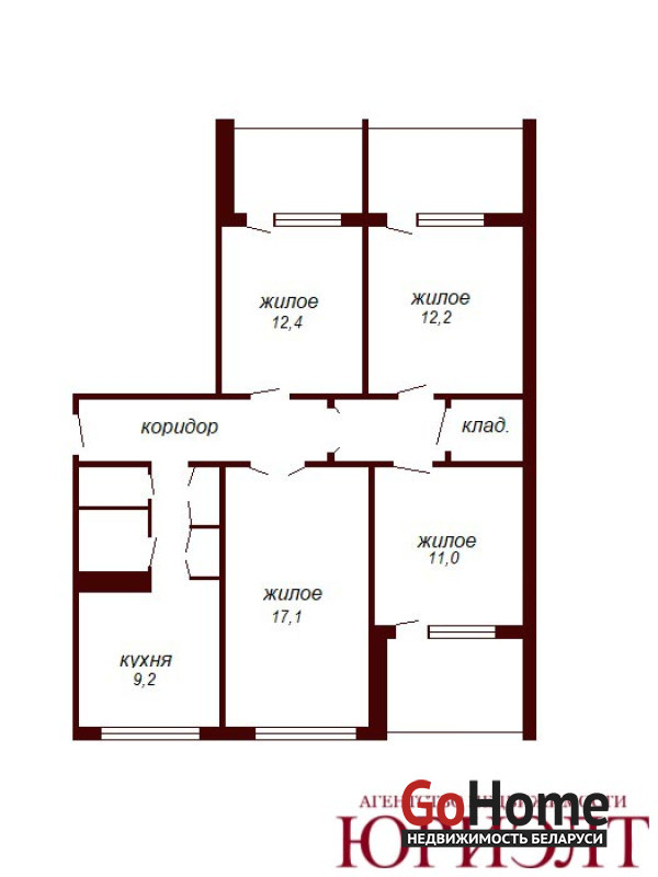 Удобная планировка: большая кухня, 3 спальни, зал, широкий коридор, раздельный санузел, 2 утепленные лоджии с выходами из спальни.