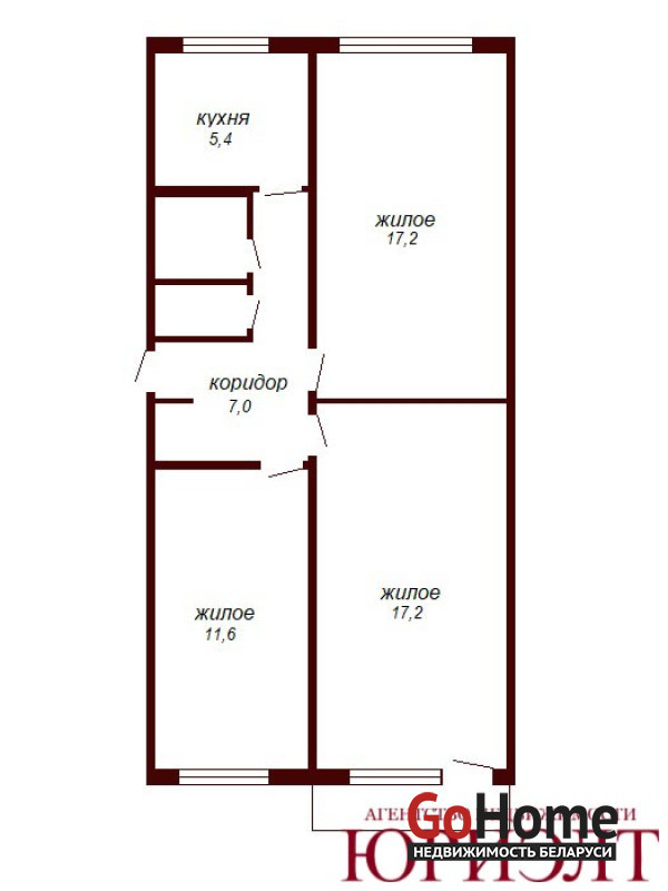 Общая площадь - 62.5 кв.м., жилая - 47 кв.м., есть застреленный балкон и подвал. Комфортная планировка на две стороны.