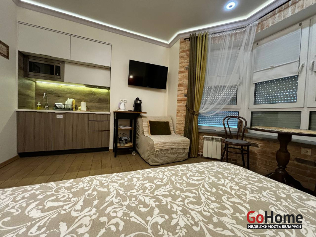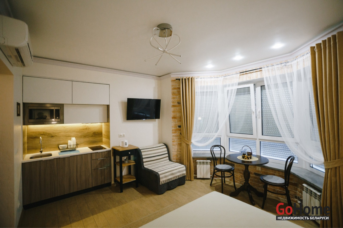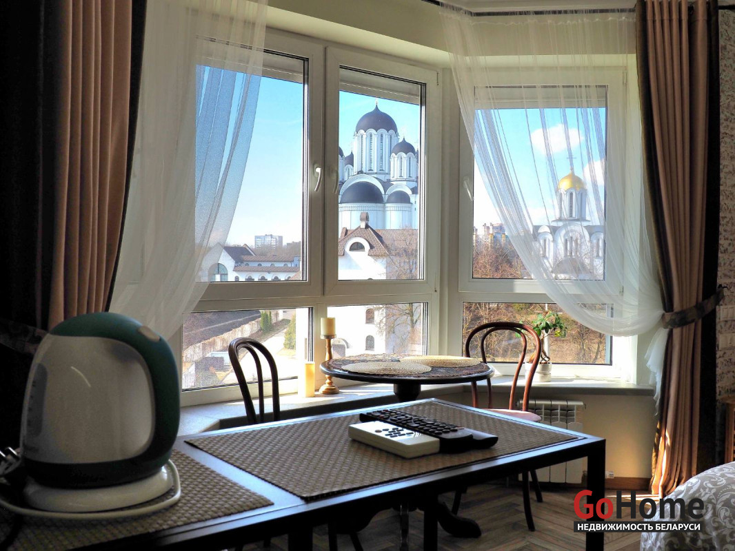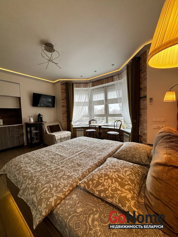 НОВИНКА! Роскошная квартира-студия в уникальном квартале Минска с живописным видом на пруд и Храм. Мы создаем интерьеры с любовью и позаботились о максимальном комфорте для ВАС: продуманный дизайн, мебель натурального дерева, экологические материалы, электрические ставни на окнах (затемнение до 100%), кондиционер, смарт ТВ, тропический душ, просторная душевая и туалетная комната оборудована сантехникой премиум класса, кухня полностью укомплектована. Мы осуществляем профессиональную уборку перед каждым заселением. Чистое выглаженное бельё и пушистые полотенца. В студии не курят, поэтому в квартире свежий запах. В квартире хорошая звукоизоляция - гостей не потревожат посторонние звуки. Ухоженный подъезд и двор, охраняемые парковки. Красивый вид из окна на пруд и Храм. В шаговой доступности метро «Спортивная», фитнес центр "Yestoday" с бассейном и теннисными кортами, супермаркет, ресторан "Васильки", парк, медицинский центр "Конфиденс". Студии рассчитаны для романтических встреч и путешествующих. Отлично для фотосессий. Квартира сдается на часы и сутки. Обратите пожалуйста внимание, для путешествующих двумя, тремя и даже четырьмя парами (можно с детьми), у нас есть аналогичные студии в этом же доме.