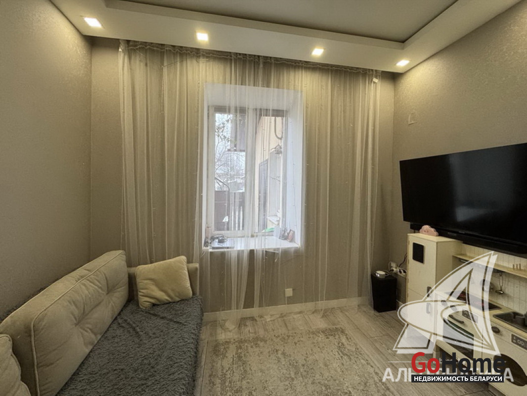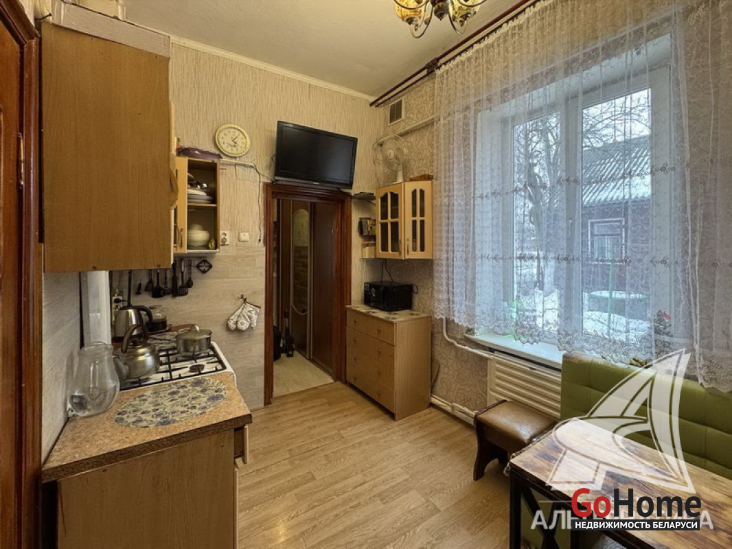Квартира в блокированном жилом дом в г.Бресте. 1917 г.п. 1 этаж. Общ.СНБ - 46,3 кв.м, общ.- 46,3 кв.м, жил.- 23,0 кв.м, кух.- 9,6 кв.м. 2 комнаты, высота потолка - 2,98 м.