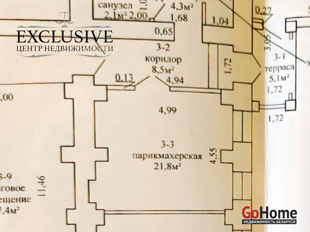 Общая площадь 21.8м.кв ( помещение бывшей парикмахерской)