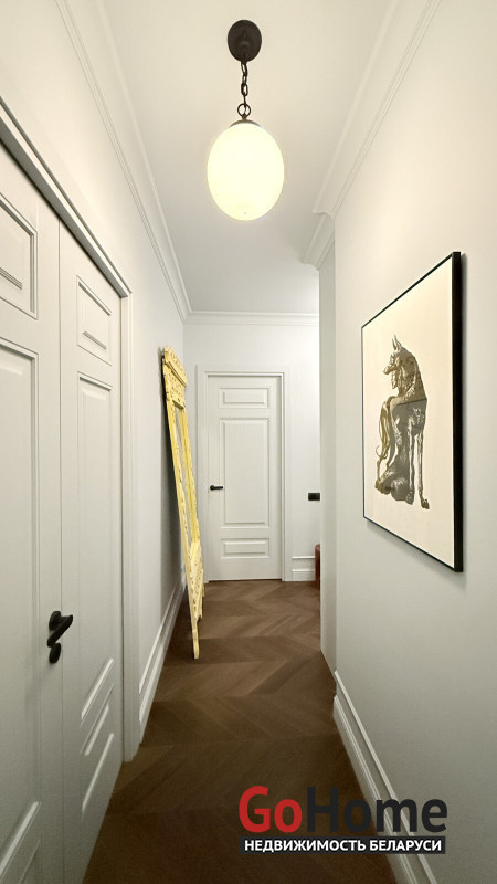 Основная задача стиля - поддержать экстерьер сталинки в интерьере, подчеркнуть и соединить элементы классического стиля с современными акцентами мебели и искусства.
