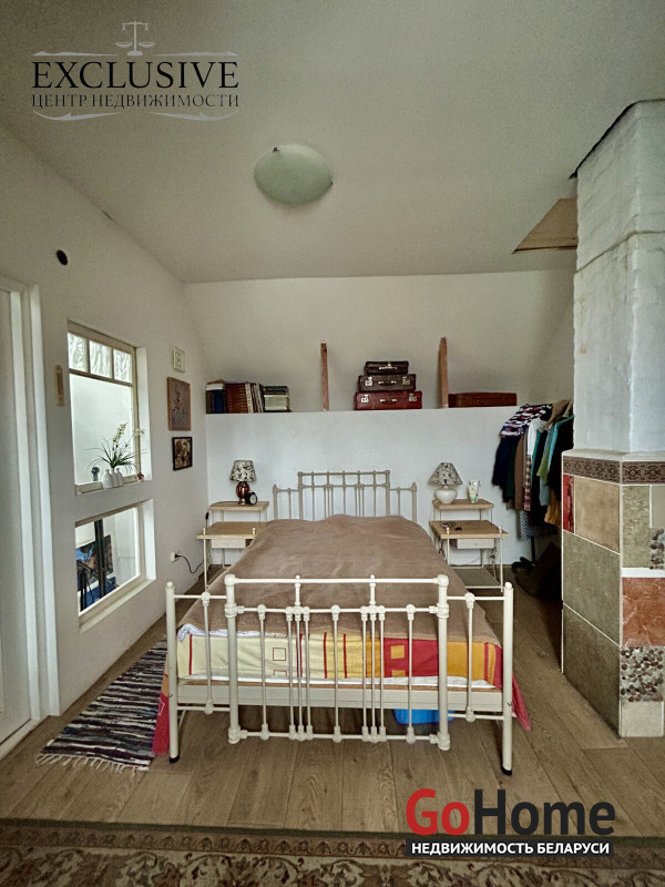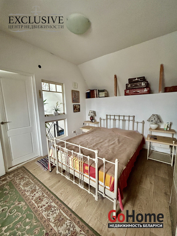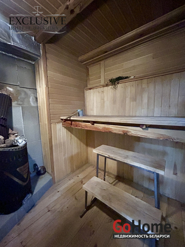 В доме выделена автономная гостевая половина с санузлом, душем, кухонной зоной и спальней на 4 человека, с отдельным входом, сауной и мастерской.
