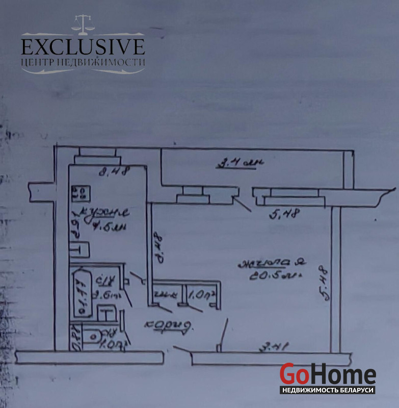 Жилая площадь - 20.5 вк.м.,