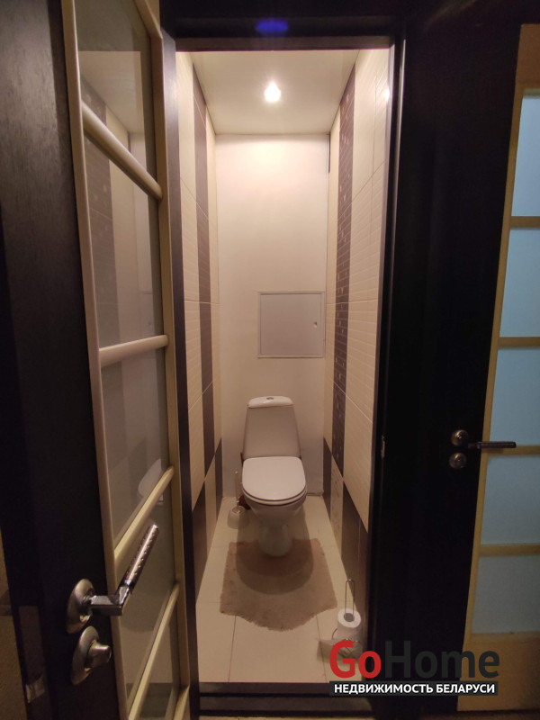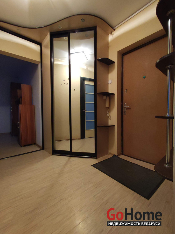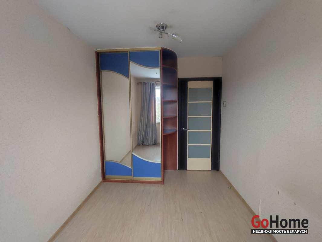 Металлическая дверь. Пластиковые окна. Балкон застеклён. В ванной и туалете плитка. Два шкафа-купе в малой комнате и в коридоре. Мебель остаётся покупателю.
