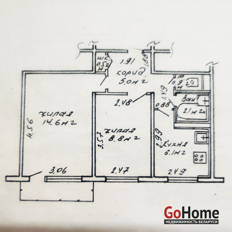 Из минусов: необходимо заменить обои и ламинат. Стены ровные, в свое время выводились. Оставляю это на Ваш вкус.