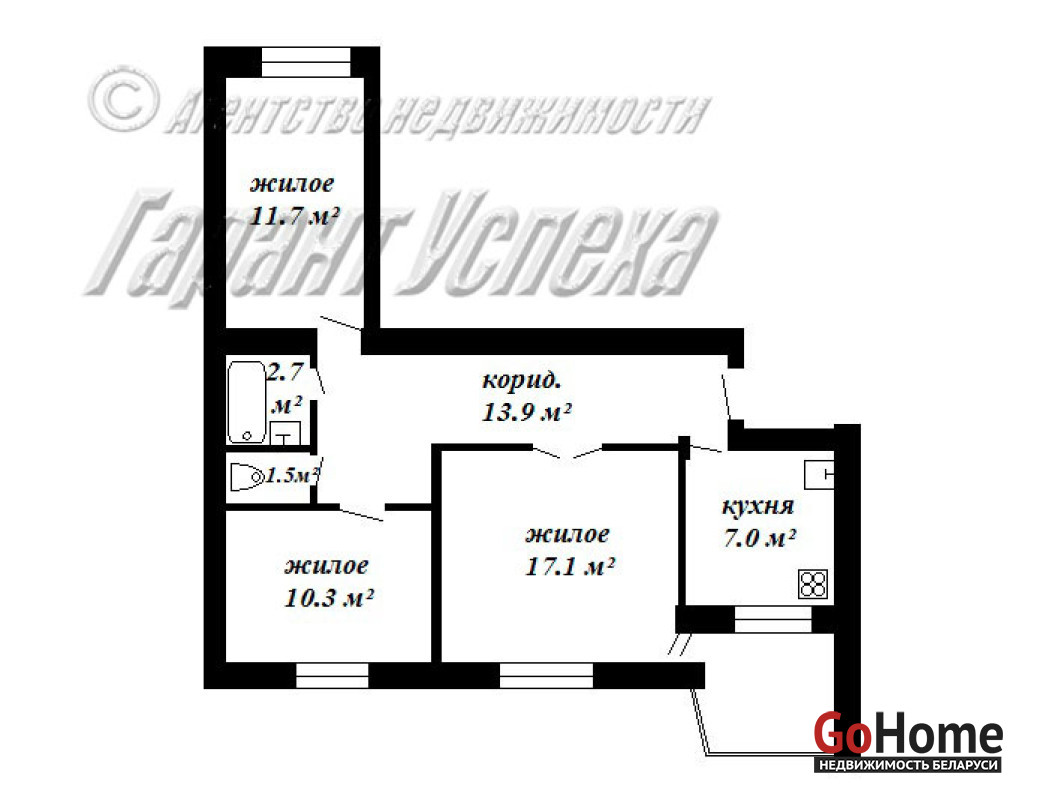 ЧУП «Гарант успеха», УНП 290472700, лицензия №02240/137 от 20.10.2006 г., договор на оказание риэлтерских услуг №1024/1 от 11.12.2021 г.