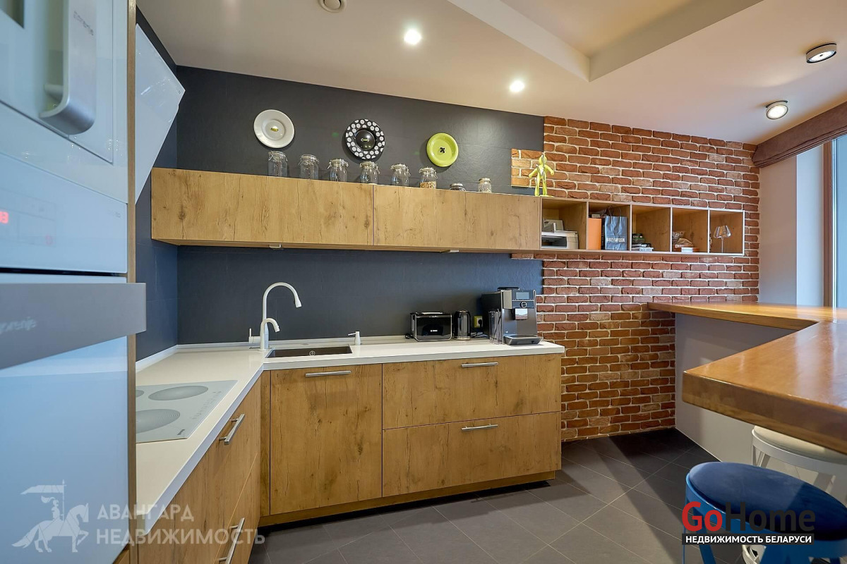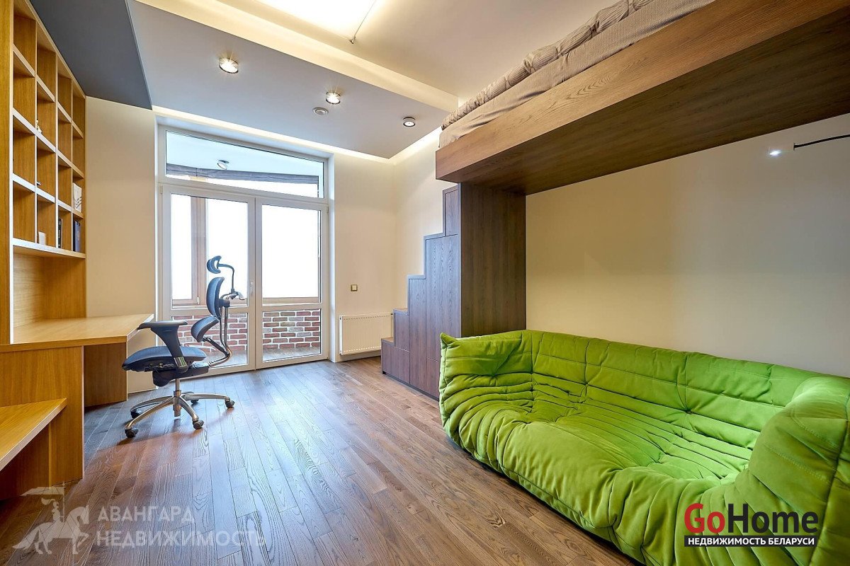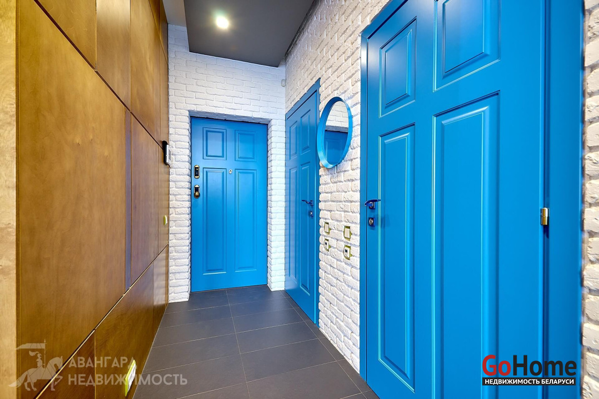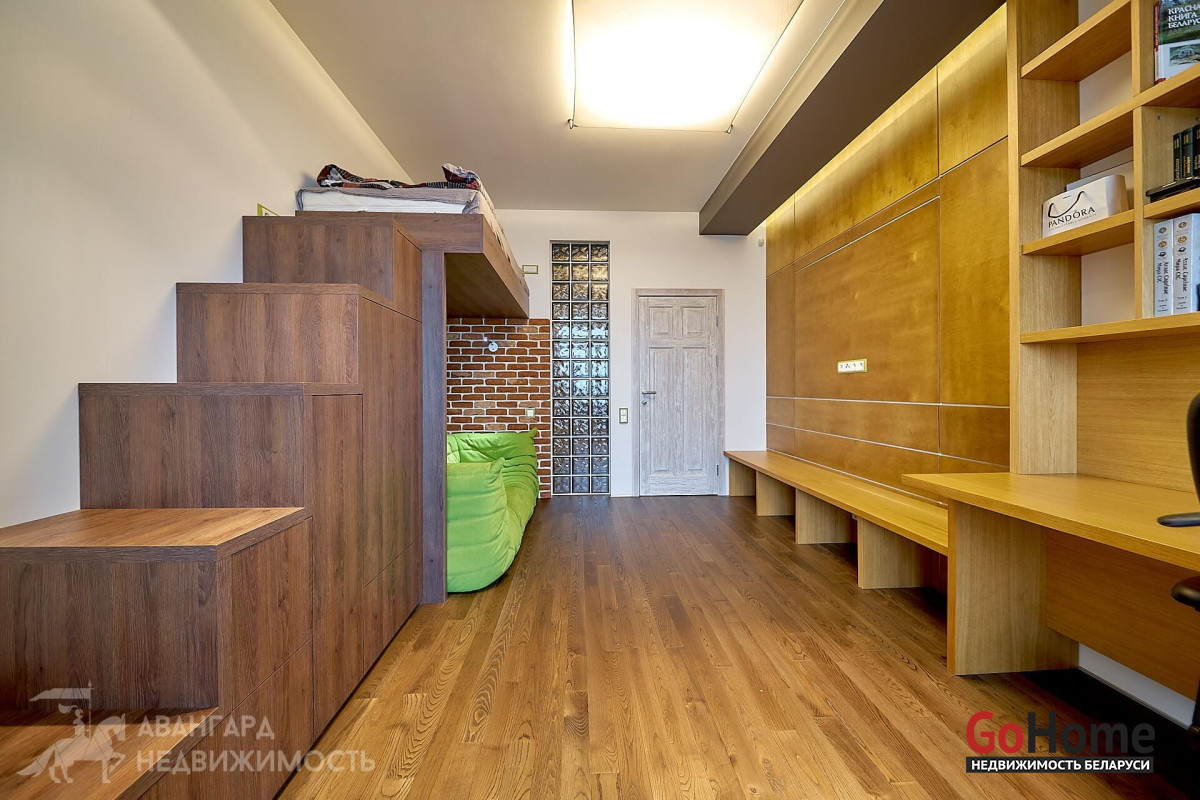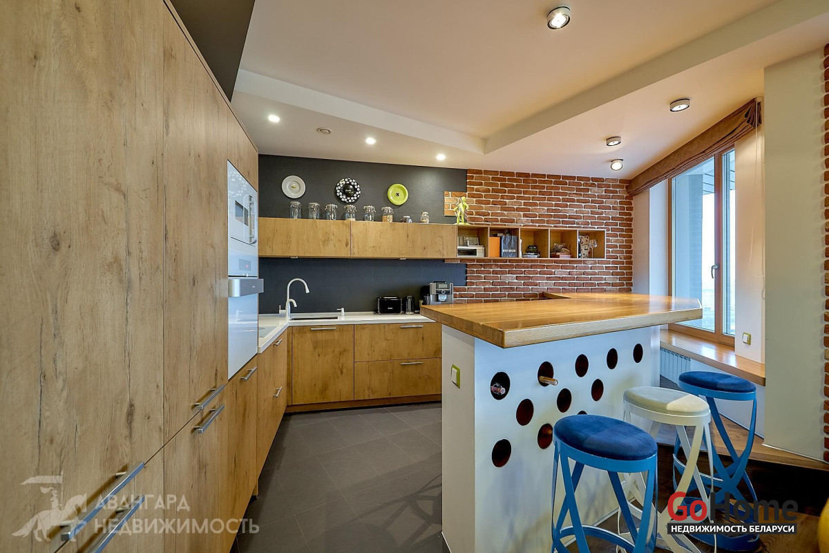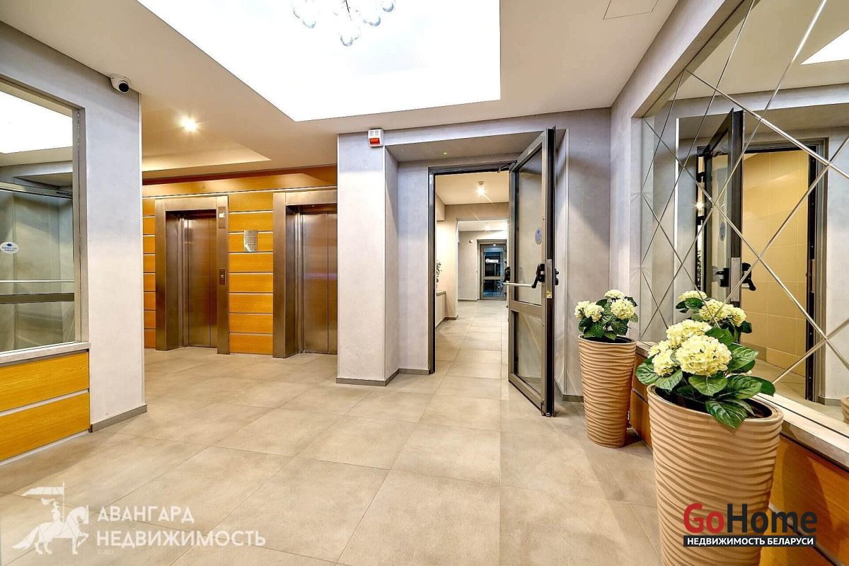 Удобная планировка: просторная кухня-гостиная 37.5м2, объединенная с балконом, жилая комната (детская либо рабочий кабинет), спальня, гардеробная, два санузла с душевой и ванной, постирочная комната, кладовая. собственная открытая терраса - замечательное место для приема гостей и семейных вечеринок. большие панорамные окна, откуда открываются живописные виды на Немигу, набережную Свислочи, парковую зону. Солнечная юго-восточная сторона света. Высокий этаж обеспечивает тишину и спокойствие, отсутствие шумных соседей сверху. Квартира укомплектована современной мебелью и техникой. - в отделке использовались качественные материалы. Сделана дополнительная шумоизоляция. Умная входная дверь Dierre (вход без ключа по карточке/чипу), видеодомофон, сигнализация, кондиционер. Окна дерево + алюминиевый профиль, выключатели и теплые полы Gira, светильники Delta Light, стеновые панели – шпон дуба, напольное покрытие паркетная доска, дубовая лестница и межкомнатные двери, в коридоре двери Dierre. Терраса – лиственница, мангал Weber.