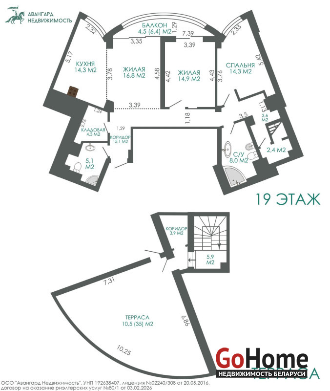 Квартира расположена на последнем 19-ом этаже современного жилого комплекса «Славянский квартал», пр-т Победителей 27.